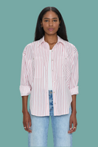 Expertly crafted with a relaxed boyfriend-inspired fit, the Samantha shirt offers both comfort and style. A collared neckline and cuffed sleeves add a touch of sophistication, while front button chest pockets provide functionality. Made from a classic oxford white fabric with bold red stripes, this shirt is a timeless addition to any wardrobe