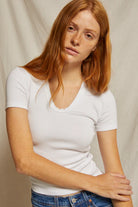 Cut in a slinky cotton rib, this new tee is everything you need to build your wardrobe this fall. A blend of cotton/spandex allows the fabric to hug the right places while allowing a natural drape. It truly takes you from day to night.
