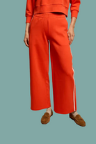 The Mikos Wide Leg Pant delivers effortless style with a clean, modern silhouette and sporty contrast stripe down the side. Made from smooth travel knit that resists wrinkles, these pants move seamlessly from airport to everyday wear without sacrificing comfort or polish. The relaxed fit feels like your favorite lounge set, making them perfect for long days on the go or cozy time at home. Pair with the Nell sweatshirt to create an easy travel outfit that requires zero effort. Once you pack them, you'll wonder how you ever traveled without them.