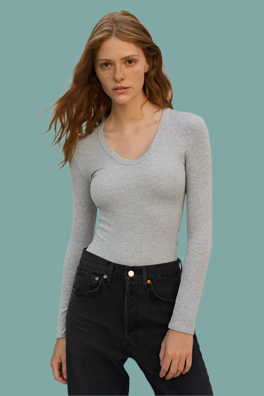 we've upped our game for fall and added this sexy, slinky, cotton rib that works for every body type. made from 90 cotton/10... an ultra deep u-neck and only in the most elevated colors, black and sugar, perfect for date night.
