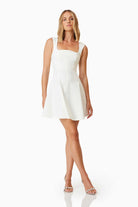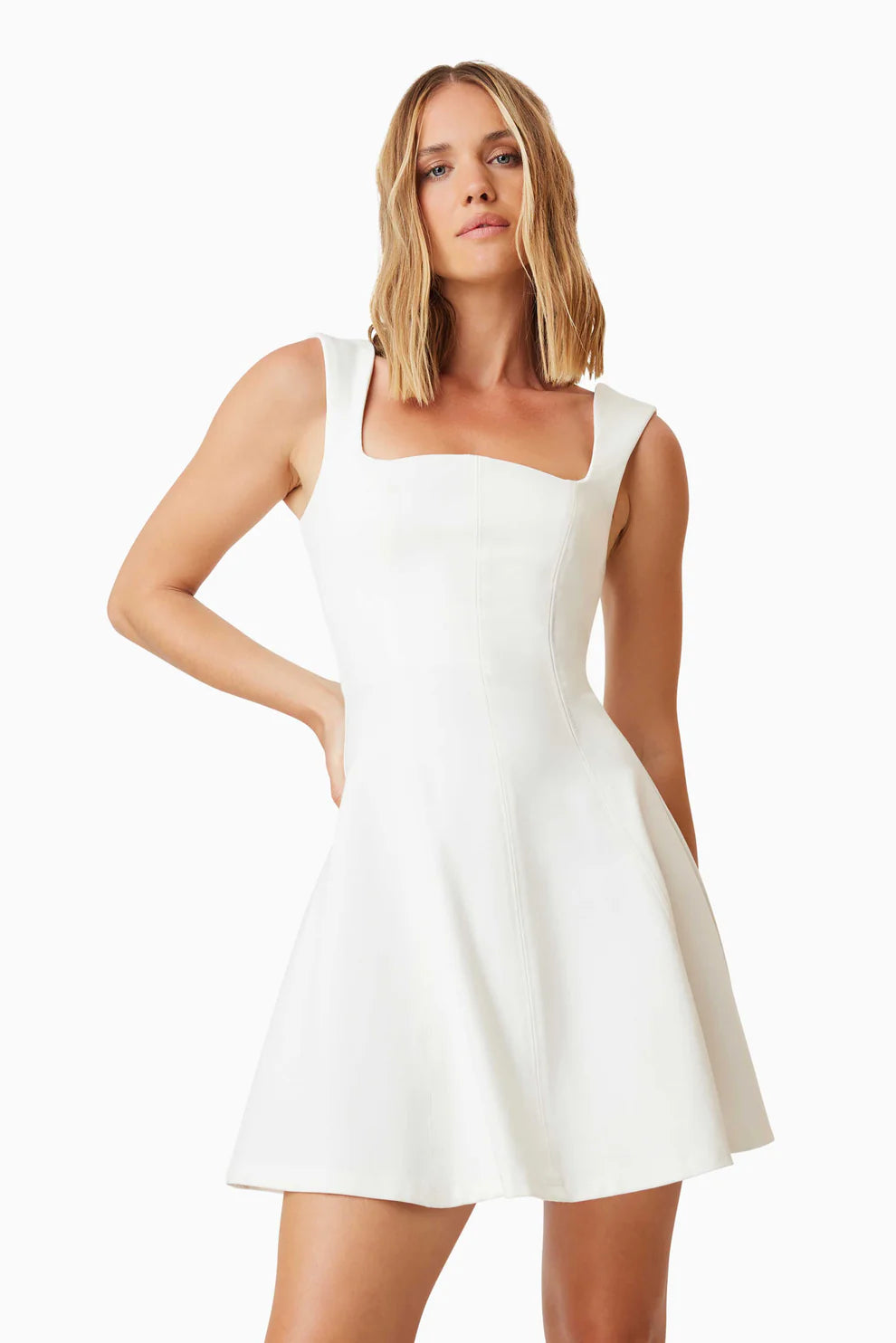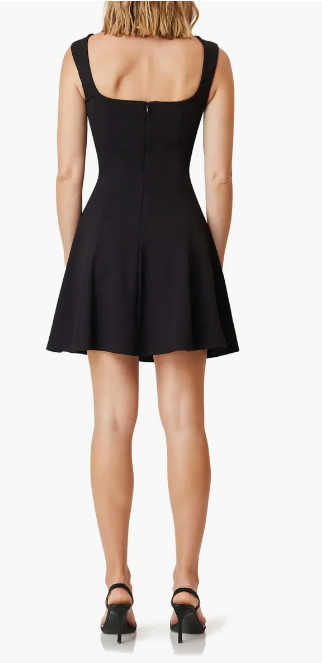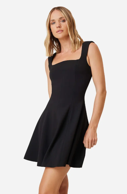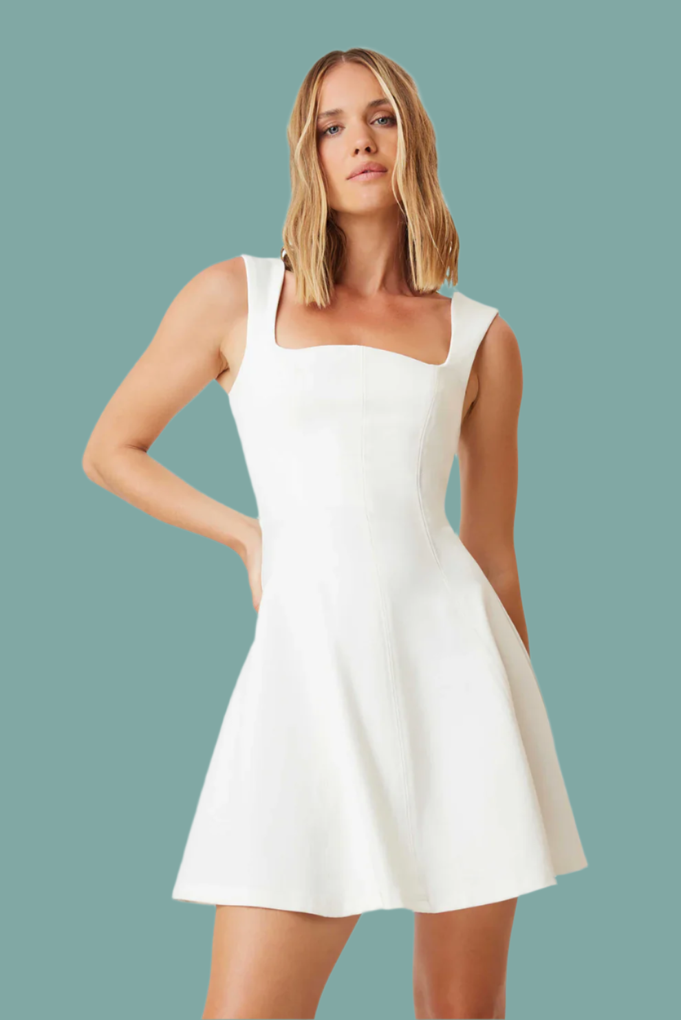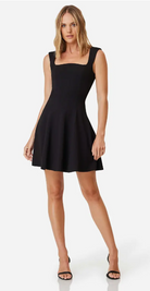 Bring a touch of playfulness and versatility to your wardrobe with the Sonnet Day Dress. Featuring a flattering skater silhouette, wide straps, and a flared skirt, this dress effortlessly transitions from day to night. With its hidden back-zip closure and square neck, it's both chic and convenient. Made with a soft and stretchy blend of viscose, polyamide, and spandex, it offers comfort and style. Pair it with your favorite accessories for a charming look.
