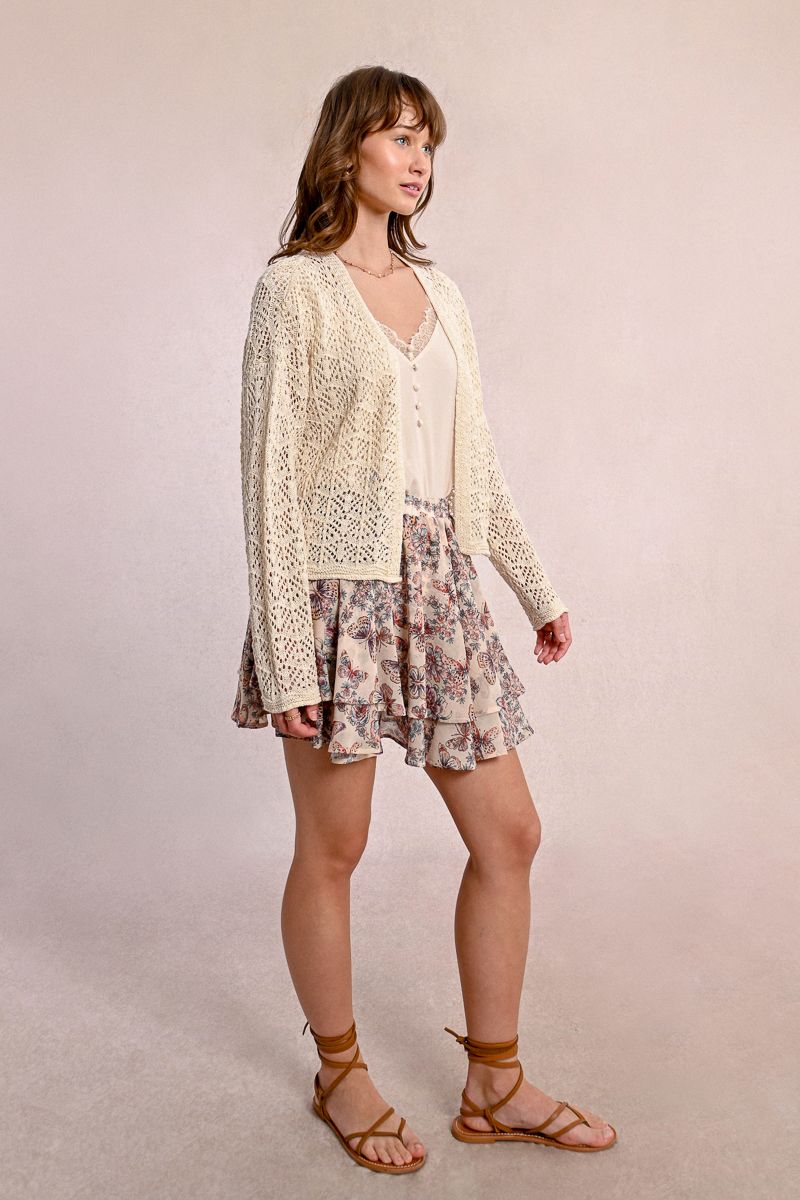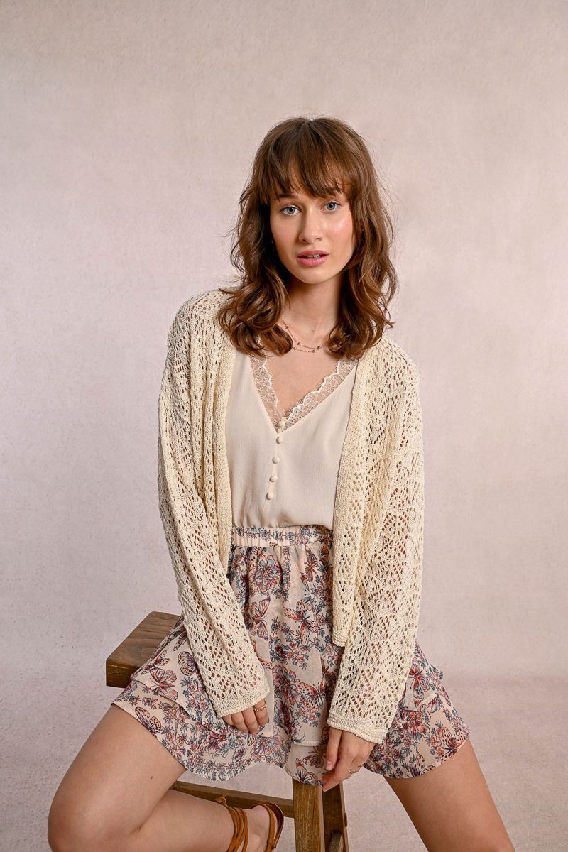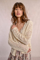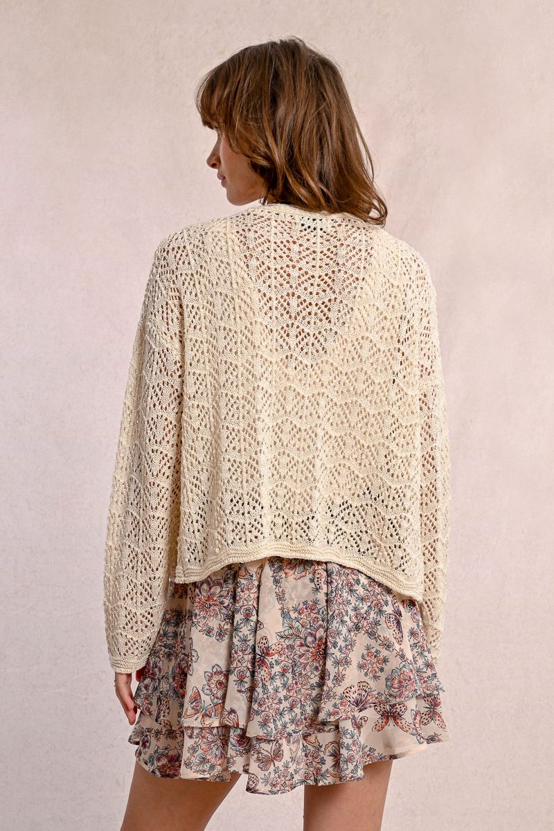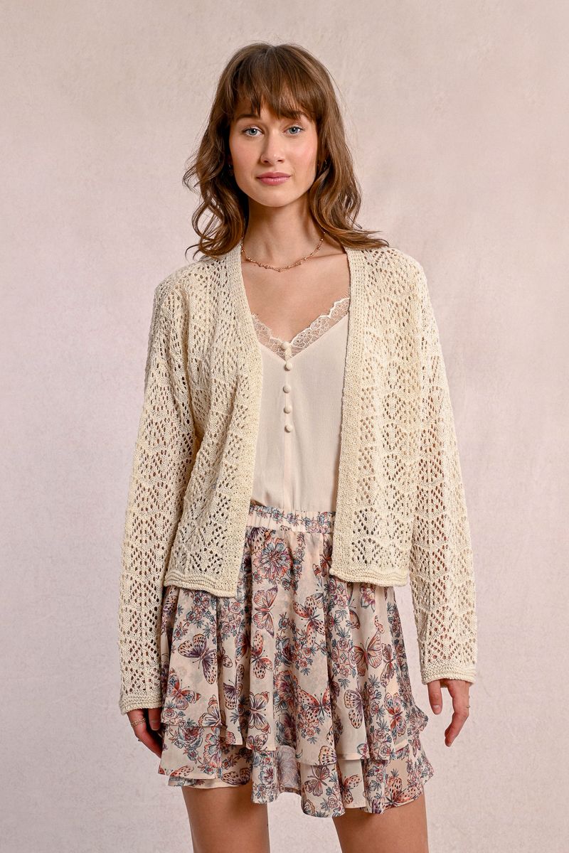 Say goodbye to boring cardigans and hello to the Ladies Knitted Cardigan! Made with a tight, crochet knit in a playful off-white hue, this cardigan boasts an open front for a unique twist on a classic. Perfect for layering, it's the perfect addition to any quirky wardrobe.