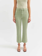 Show off your playful side with the Shy Girl Raw Cut in Pistachio. These high rise cropped kick flare jeans feature an optimistic green hue and are made from our Just Right fabric - a flattering blend of rigid and stretch. With an 11" rise and 26.5" inseam, these jeans will make you feel confident and comfortable all day long.