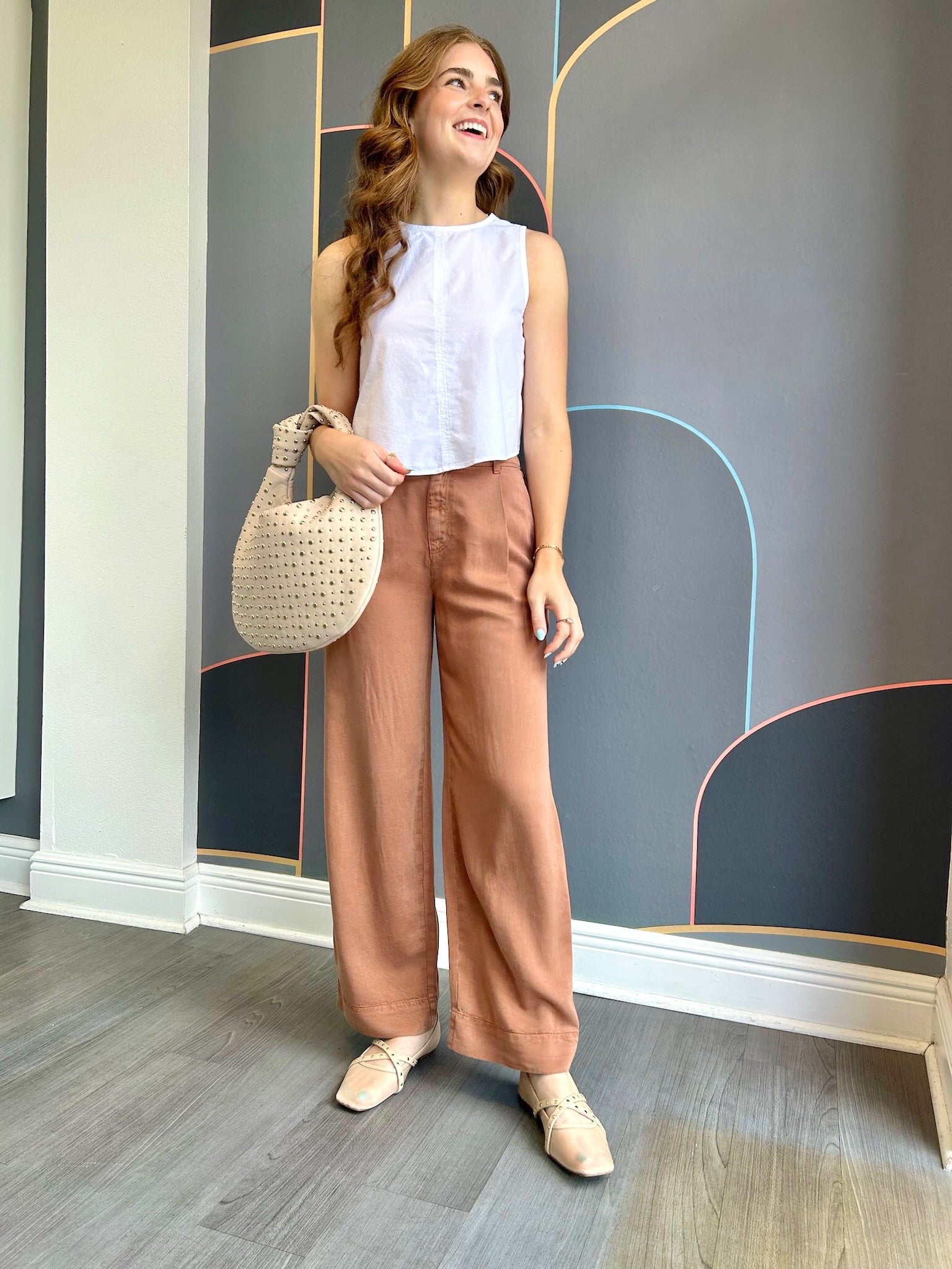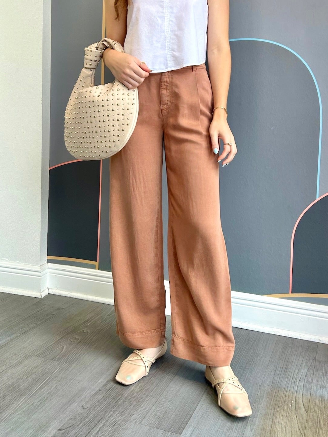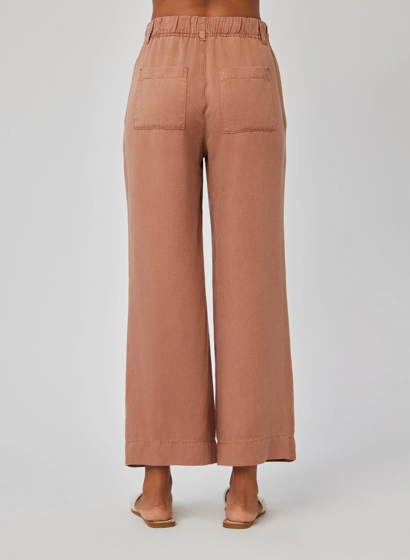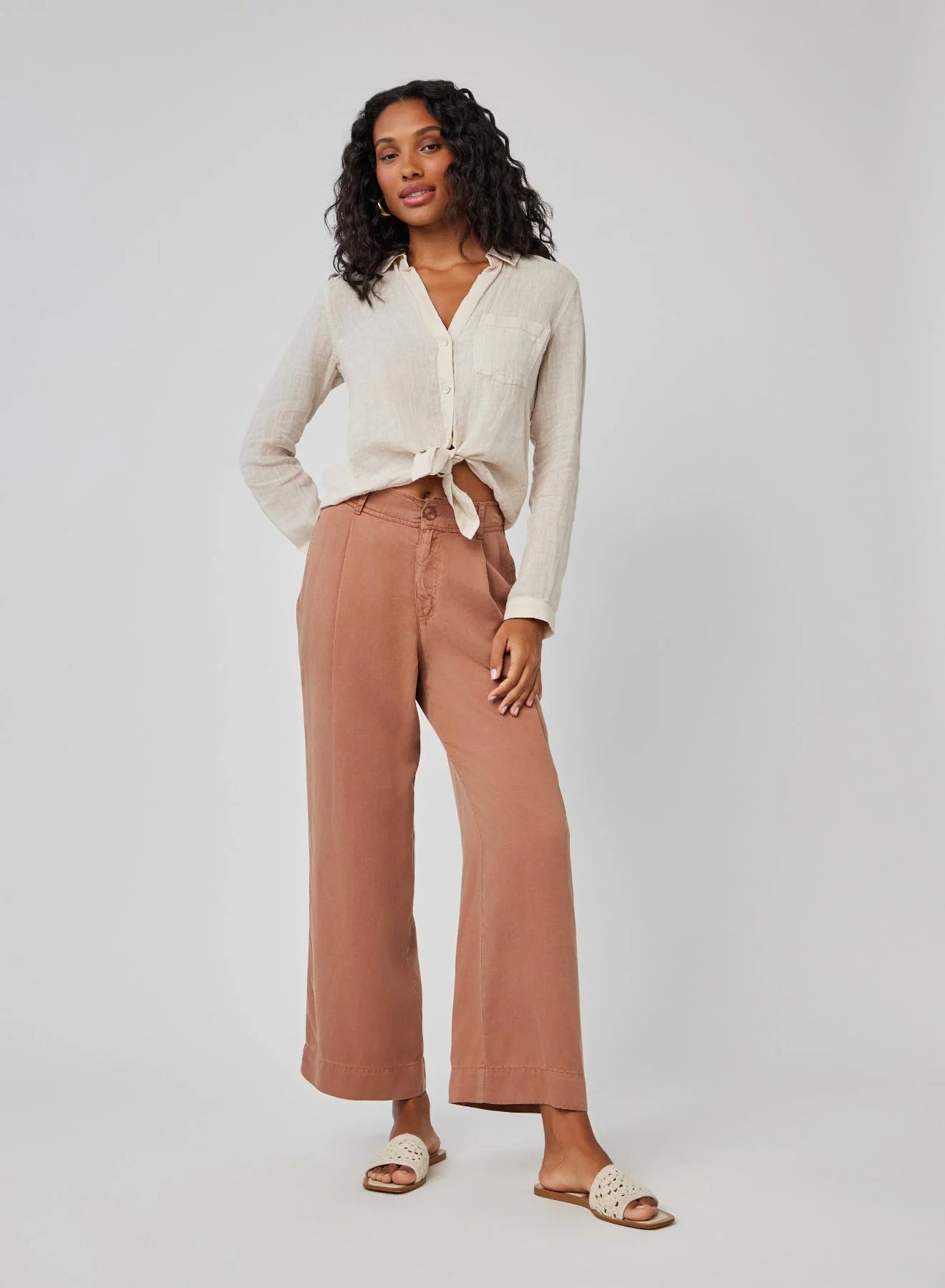 Introducing the Marina Pleated Wide Leg Ankle Pant. Designed with a soft blend of Tencel and linen fabric, these pants not only feel great but also provide all-day comfort. With their versatile style, they can easily transition from a comfortable trouser to a chic look.