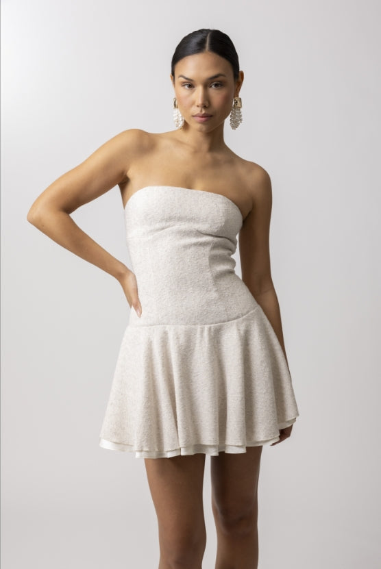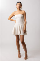 The Addie Mini Dress features a strapless design and a corset top, perfect for a modern and elegant look. Its figure-flattering silhouette and comfortable fit make it a must-have for any fashion-forward wardrobe. Show off your style with confidence in this stunning dress.