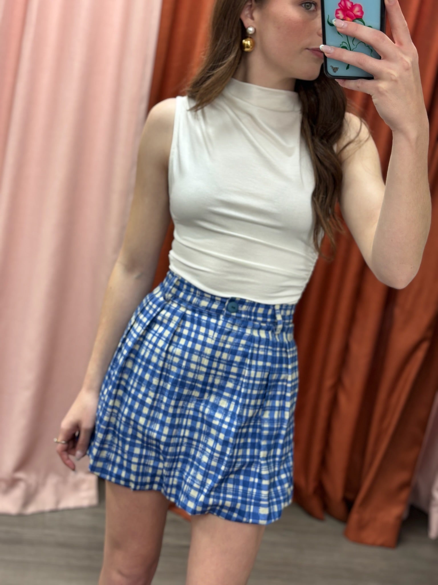 Get ready to make a fashion statement with our Betty Skirt! This blue plaid bubble skirt adds a playful touch to any outfit. Stand out from the crowd and show off your unique style with this fun and quirky piece. (Double meanings and quirky language? We've got it all - literal and figurative!)