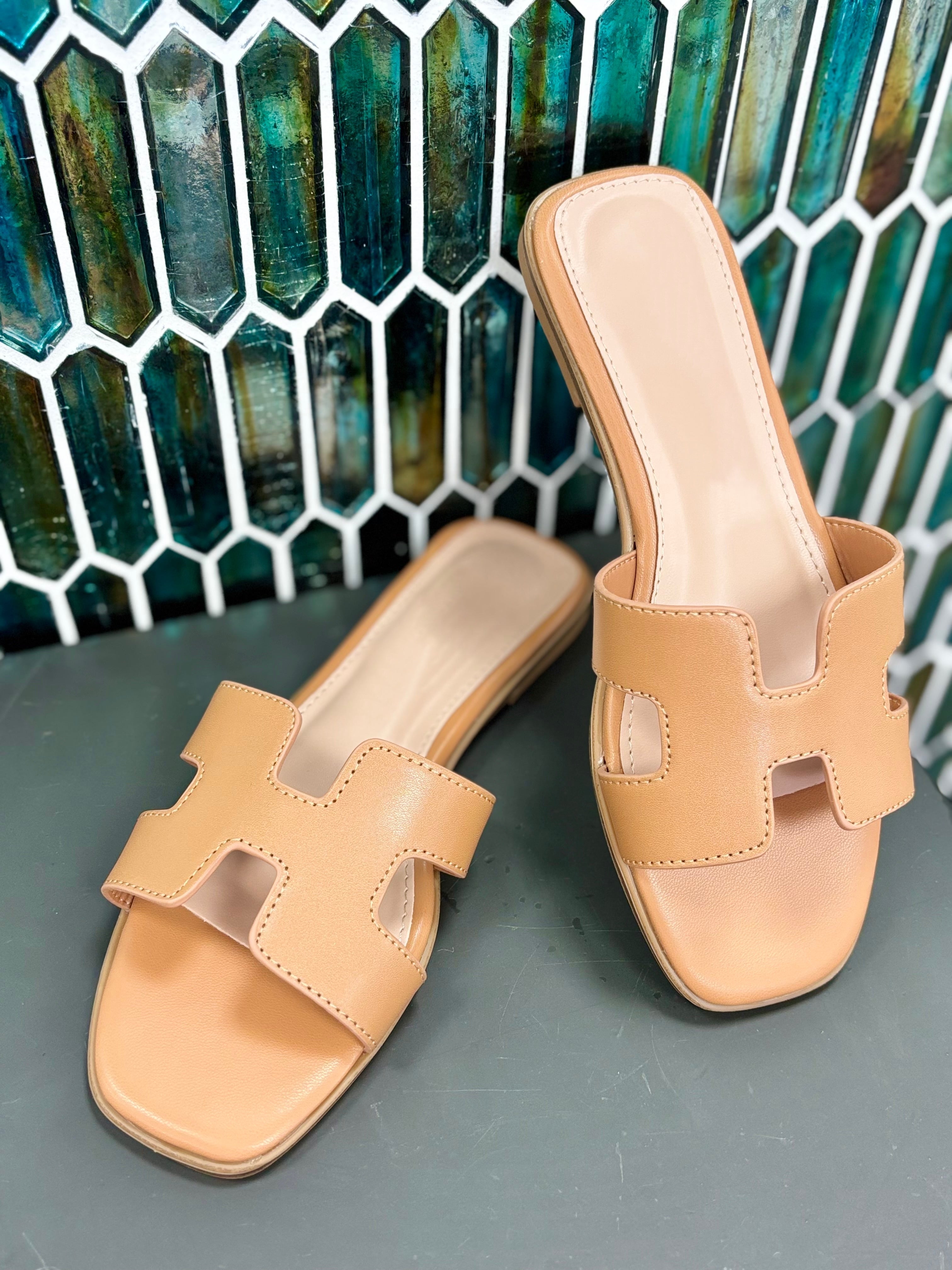 Step your sandal game up with these Heather Slip On Sandals! Featuring a unique H-shaped cutout upper design, these slip-ons are the epitome of minimalist chic. Available in both tan and raffia, they're a must-have addition to your shoe collection.