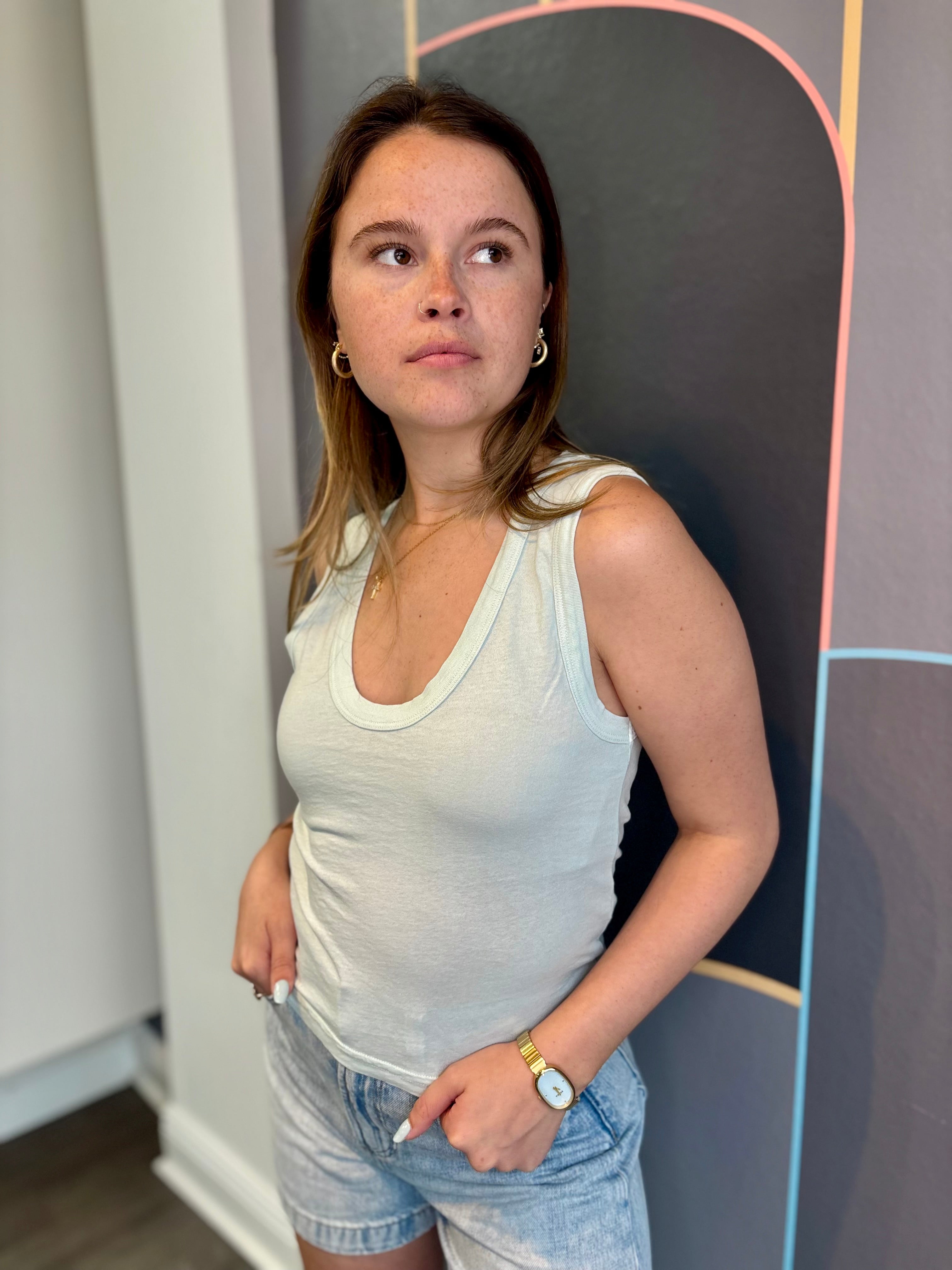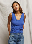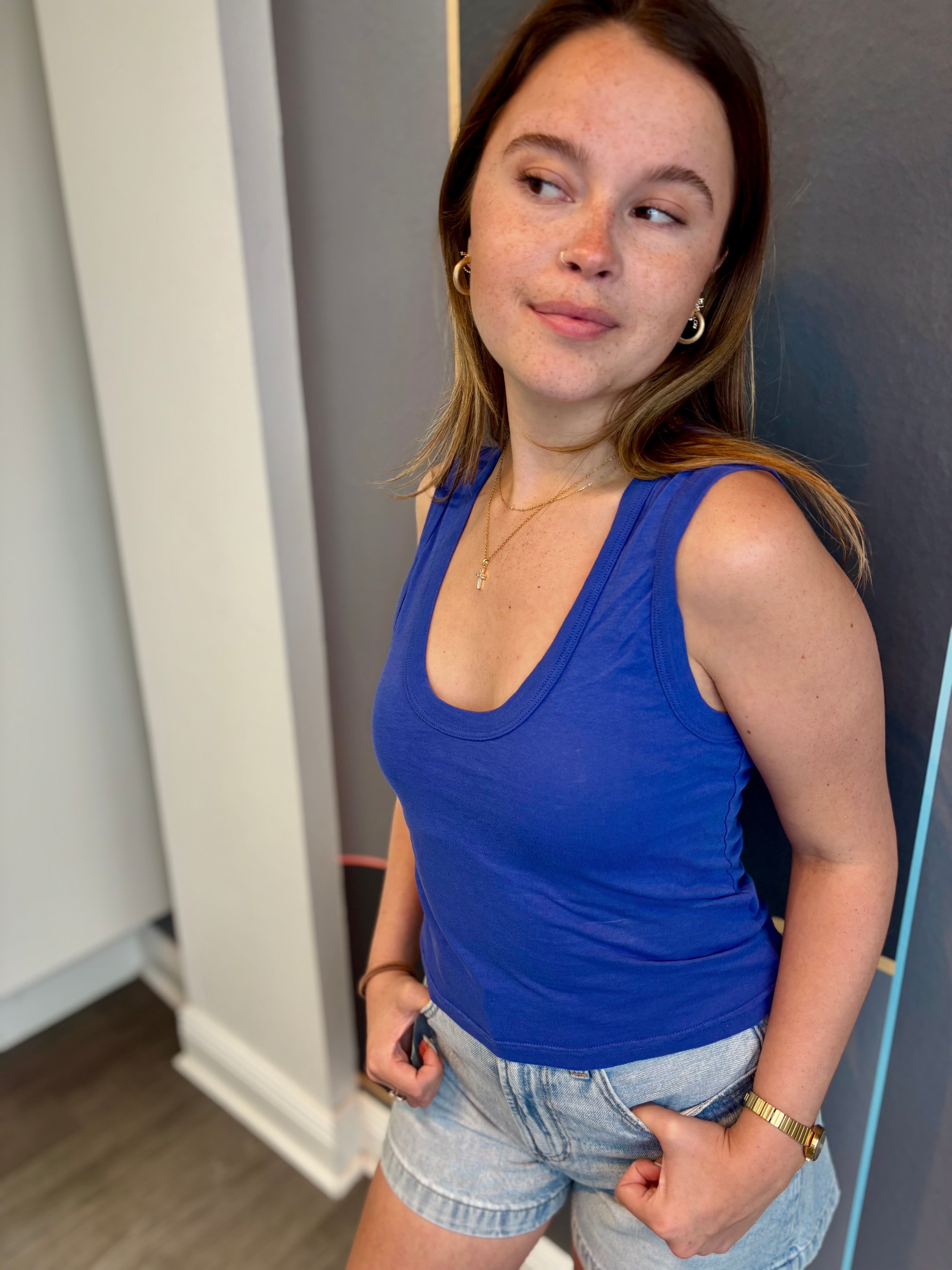 Elevate your everyday with our Khara Rib Scoop Tank. Made from soft cotton, this bra-friendly tank falls naturally at your waistline for ultimate comfort and style. With a u-neckline and wide straps, it's the perfect combination of ease and versatility. *100% cotton for extra softness. Need we say more?