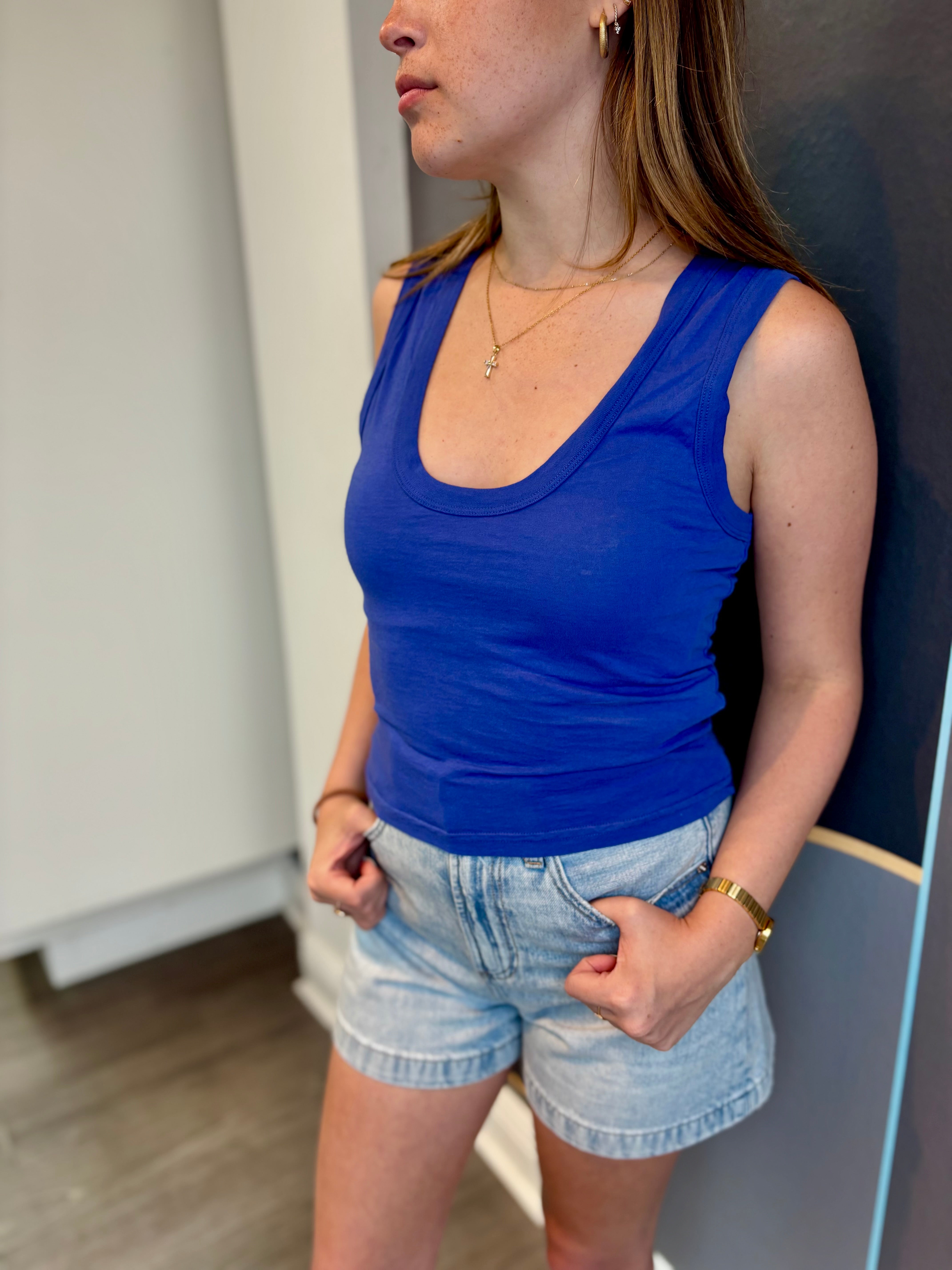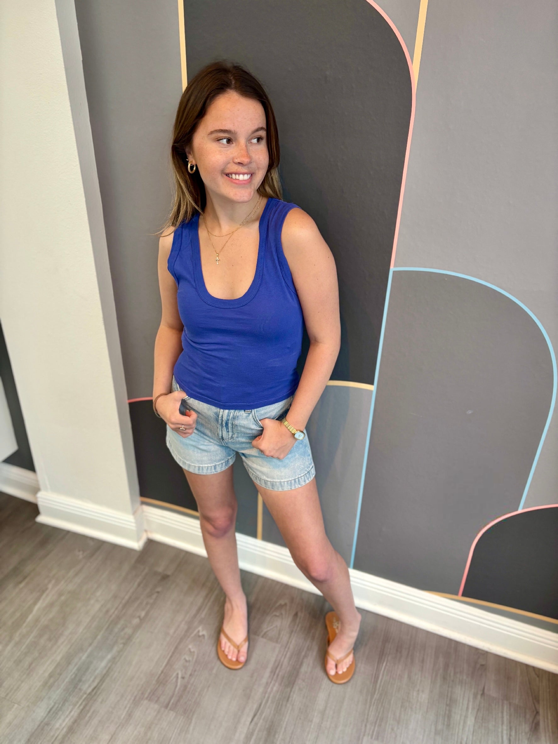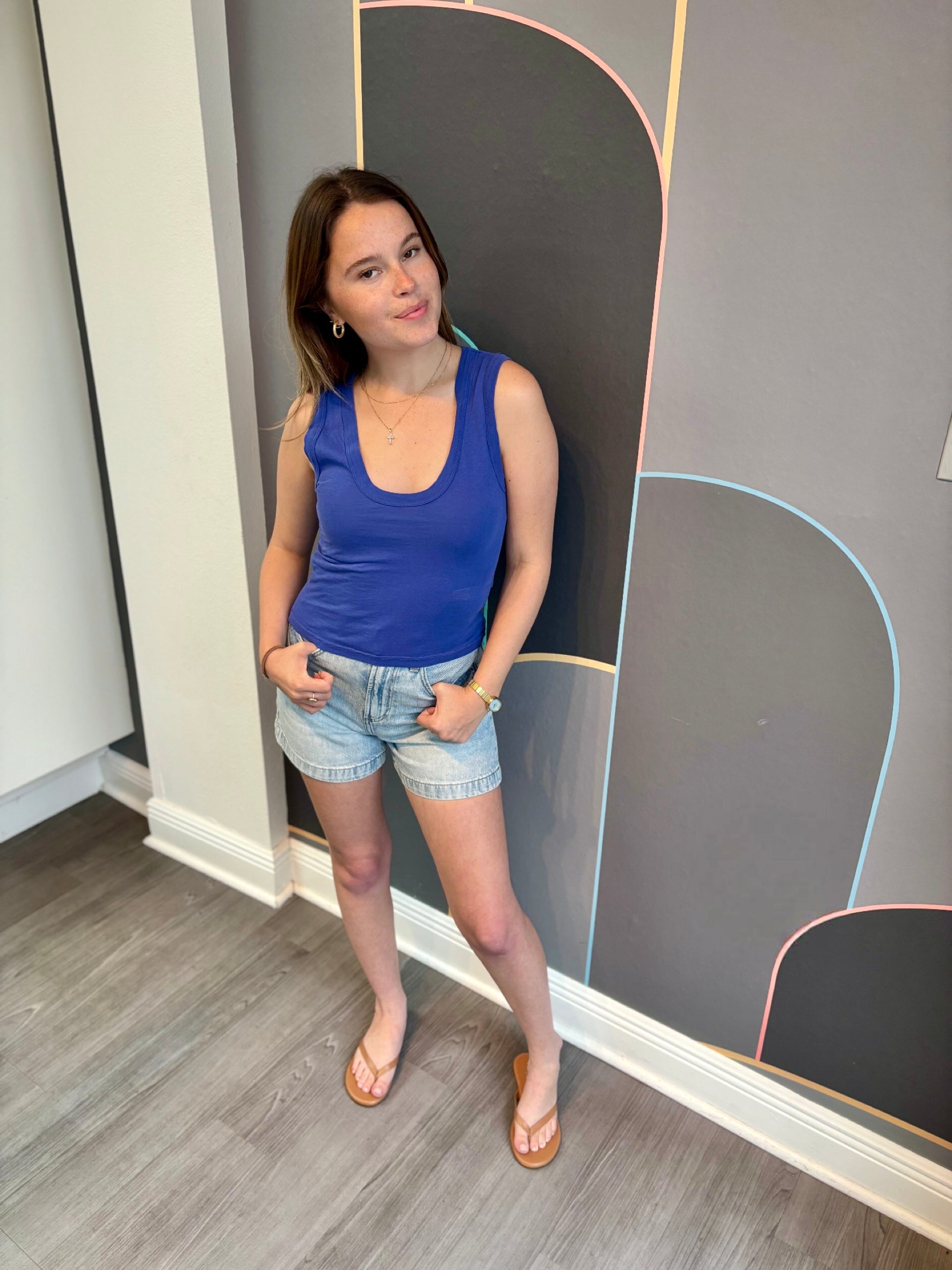 Pair Violet Blue Tank with the Emily Pull On Sweatshorts