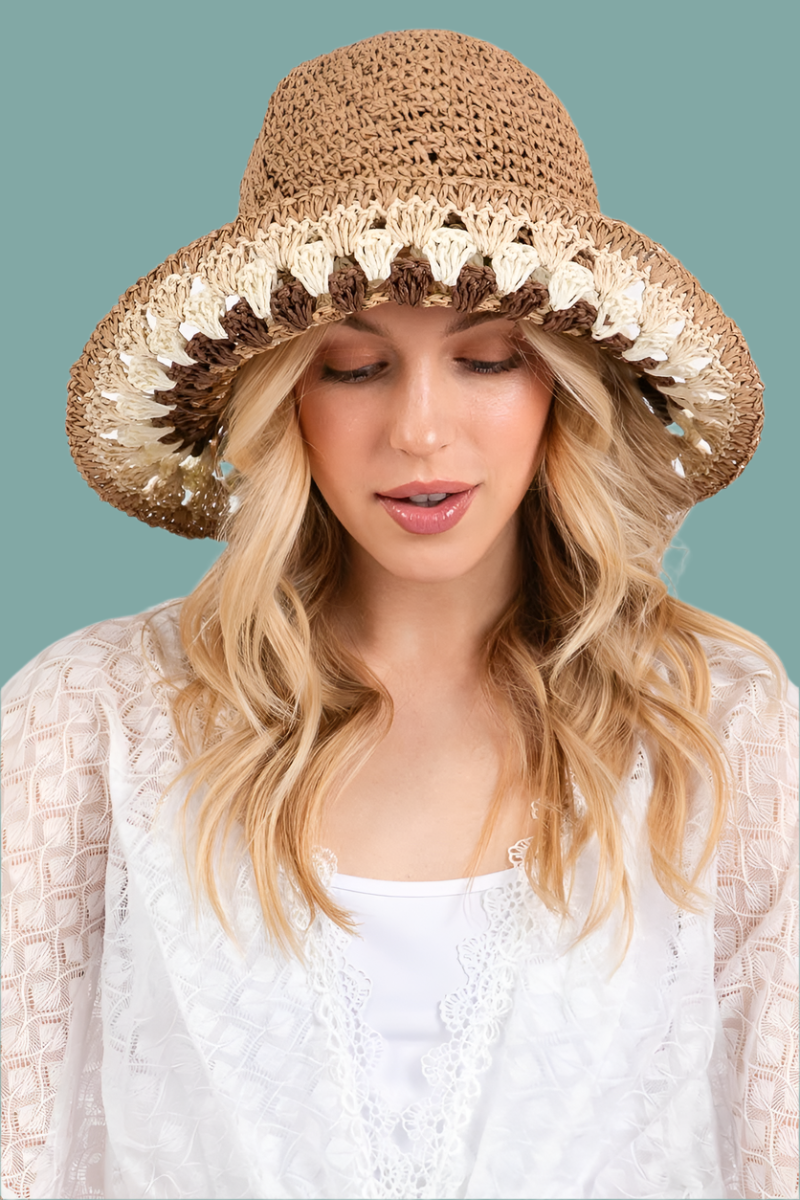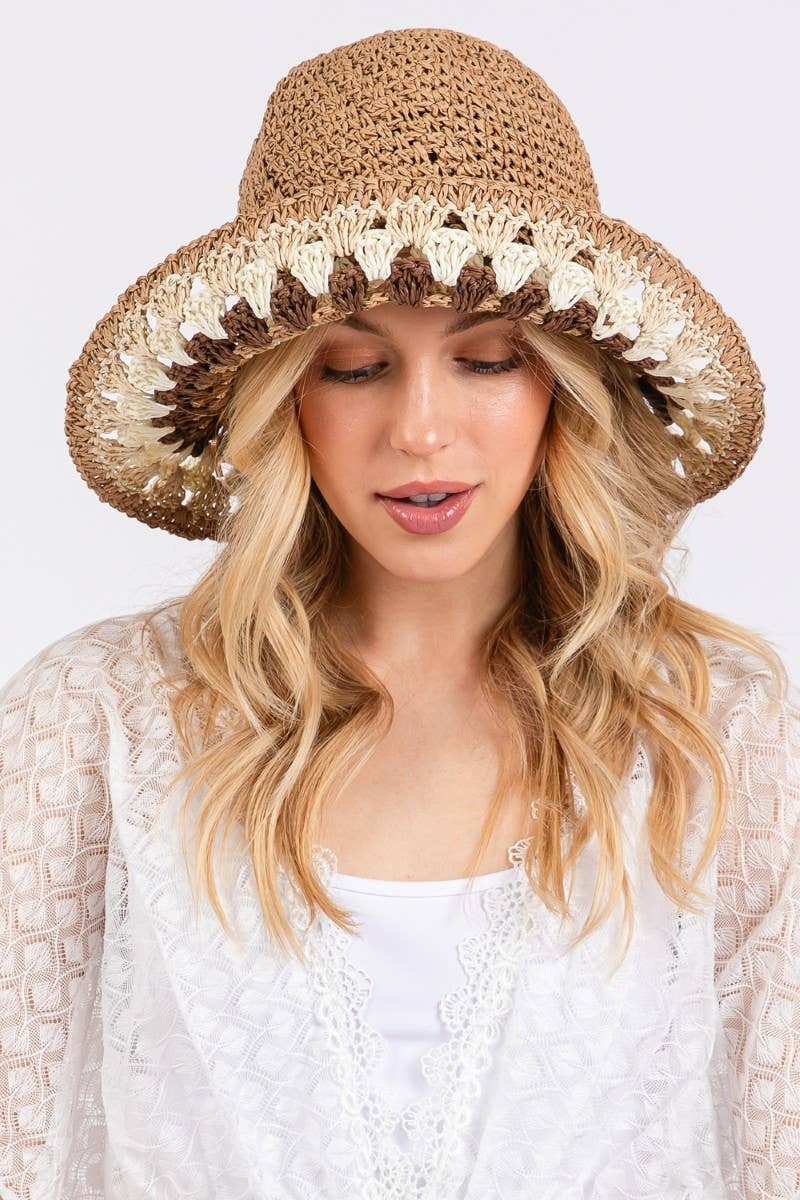 Multi Color Trim Straw Braided Bucket Hat