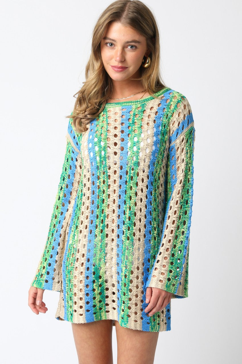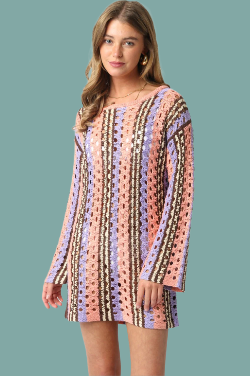 Our Phoenix Cover Up features a long sleeve and a boat neckline.