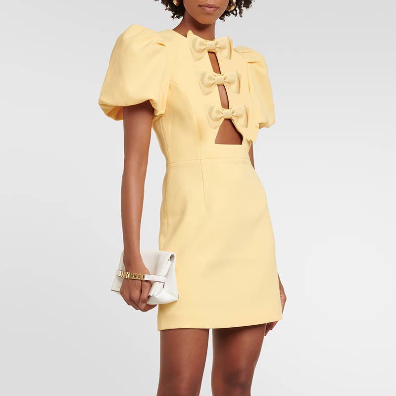 Elevate your wardrobe with this French-inspired mini dress, perfect for those seeking a blend of modern style and classic elegance. Crafted from high-quality fabric, this dress boasts unique puff sleeves and an eye-catching bow accent that adds a touch of sophistication to the overall design. The playful cut-out at the waist provides an edgy twist, making it an ideal choice for fashion-forward women. With its hip-hugging silhouette, this dress promises to flatter your figure while ensuring comfort throughout wear.
