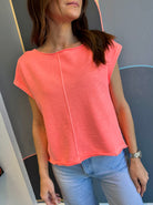 Asymmetrical short sleeve raw hem tee