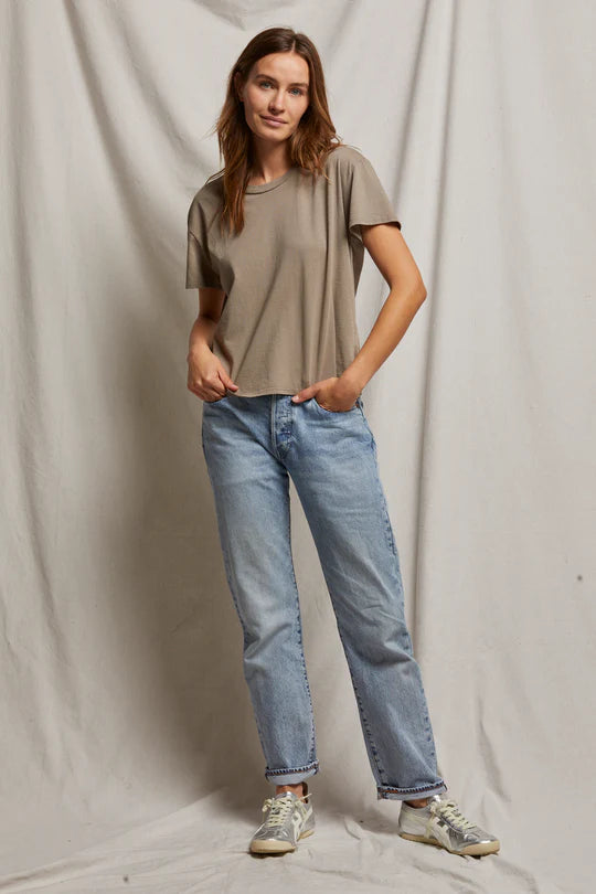 the ideal, relaxed-fit crew neck tee. subtly captivating, never overt. the must-have piece you'll want to don every day. matches perfectly with mid-rise denim. handpicked shades for any style. grab a couple; they're bound to be your all-time favorites.