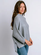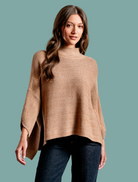 Stay cozy and stylish in this oversized Boho Sweater featuring a relaxed turtleneck and a hi/lo hem for a laid-back vibe. Crafted in soft garter stitch, it offers breathable comfort with 3/4 sleeves and side slits that allow easy movement. Contrasting rib accents add a touch of detail, while the wool, nylon, and acrylic blend keeps you warm without heaviness—perfect for casual days and layering.