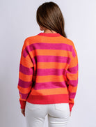 The London Sweater combines coral, red, and fuchsia hues in a cozy crewneck pullover knit. Made from a sustainable blend of 5% wool, 54% recycled polyester, 15% lyocell, 8% recycled nylon, and 18% acrylic, it offers warmth, softness, and eco-friendly comfort. This casual sweater adds a vibrant touch to your wardrobe while keeping you comfortable throughout the day.