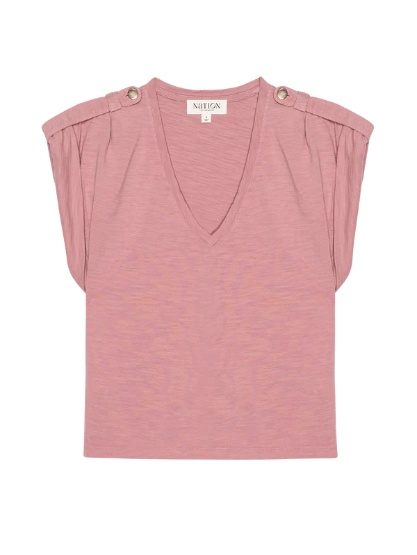 Effortless style meets comfort in this banded V-neck top. Roll up the sleeves, button up with our signature gold shanks and add a slouchy edge by tucking it in. The soft and breathable Peruvian Cotton, pleated detail and bra-friendly fit make it a wardrobe must-have. Made in Peru with love.