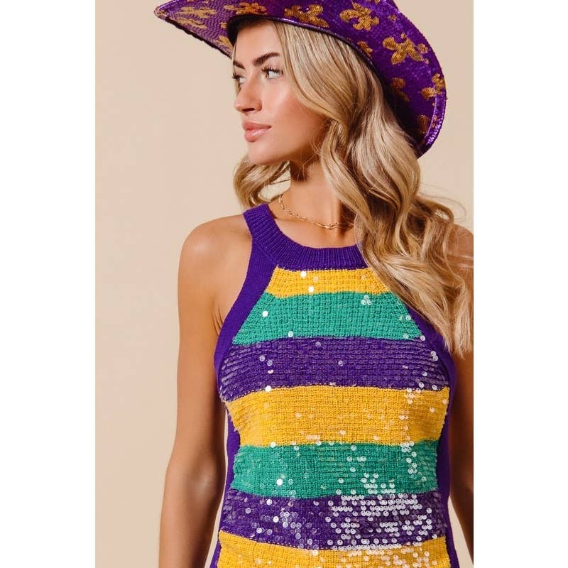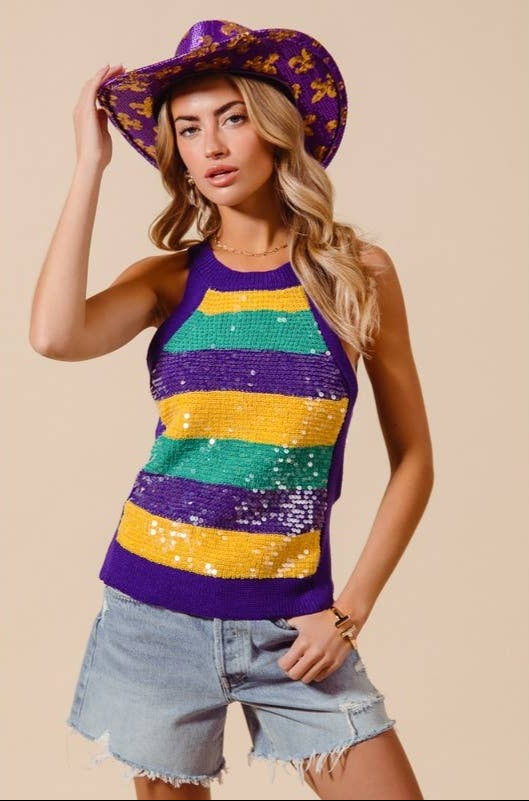Mardi Gras Wide Stripe Sequin Tank