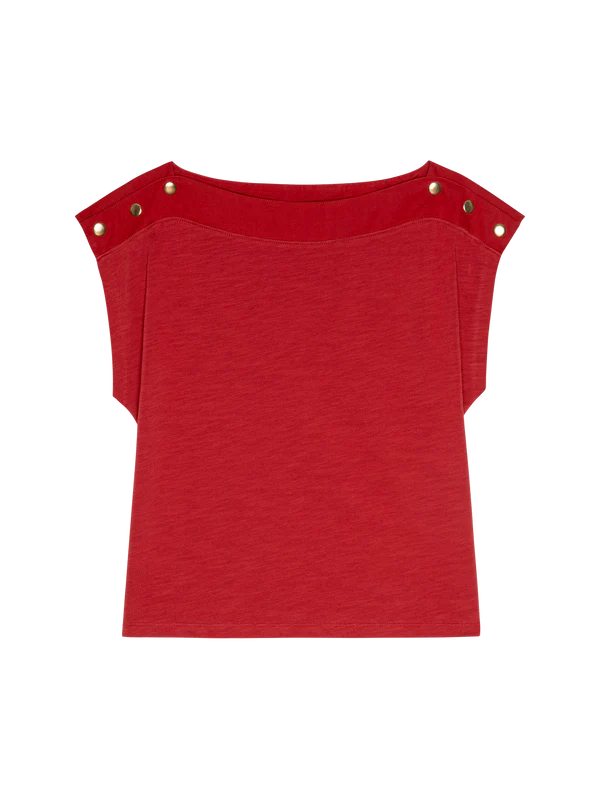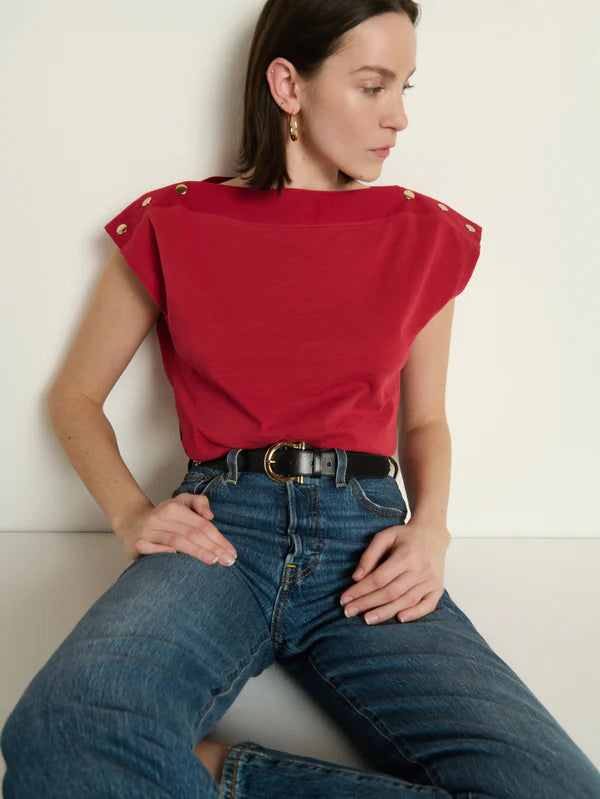 An everyday essential in our 100% cotton heavy slub, this boatneck top features gold-tone snap details along the shoulders. This one comes in Rio Red.