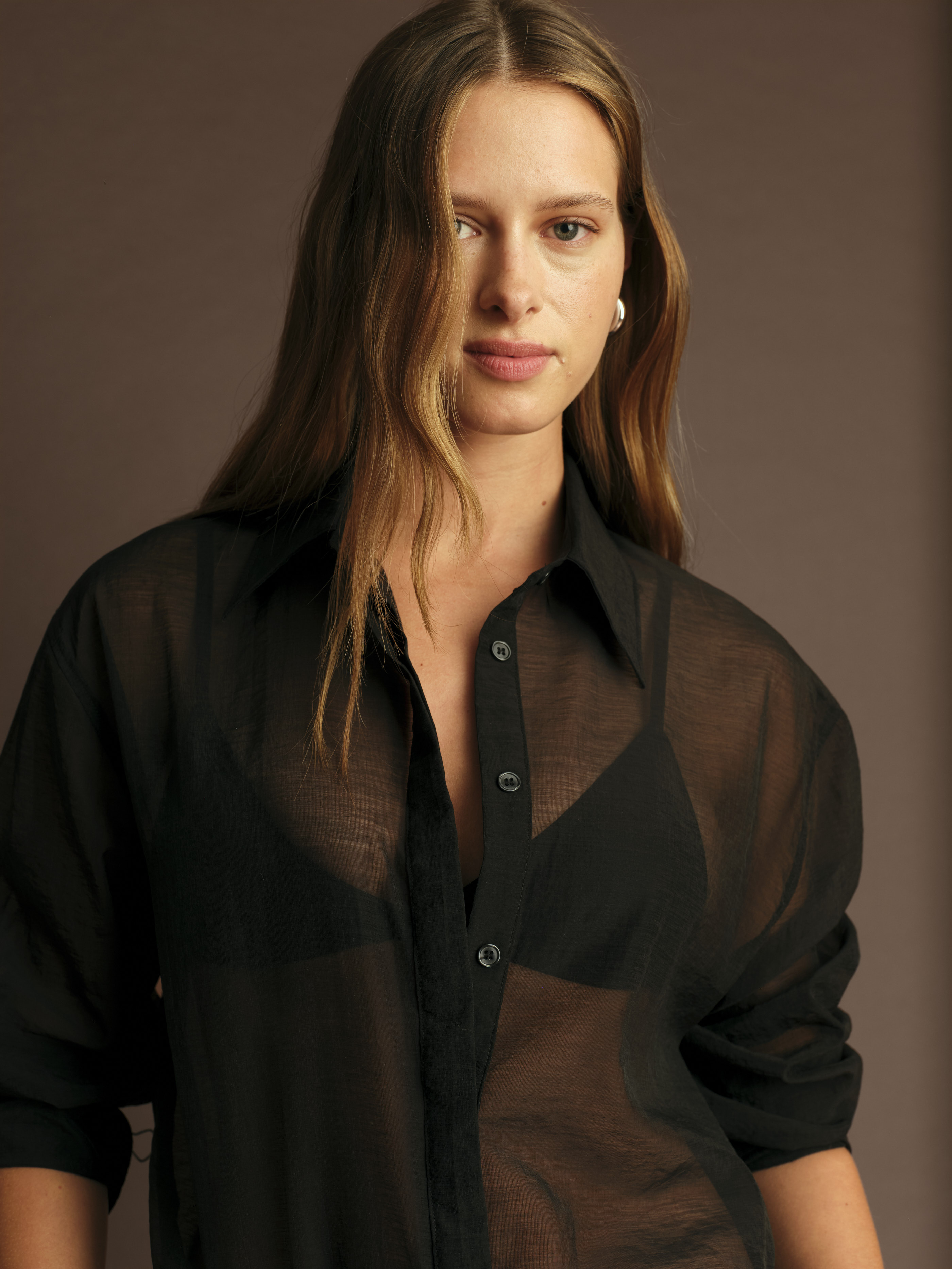 Add a touch of flirtatious elegance to your wardrobe with the Hugh Sheer Blouse. This classic button-down features a delicate sheer fabric that playfully reveals just enough, making it perfect for layering or wearing solo on a sunny day. Its timeless style pairs effortlessly with jeans or skirts, bringing a fresh twist to your everyday look.