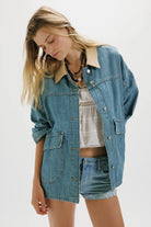 Perfectly oversized, this staple denim jacket from we the free features asymmetrical pockets and a contrasting canvas collar for subtle details that truly make the piece.