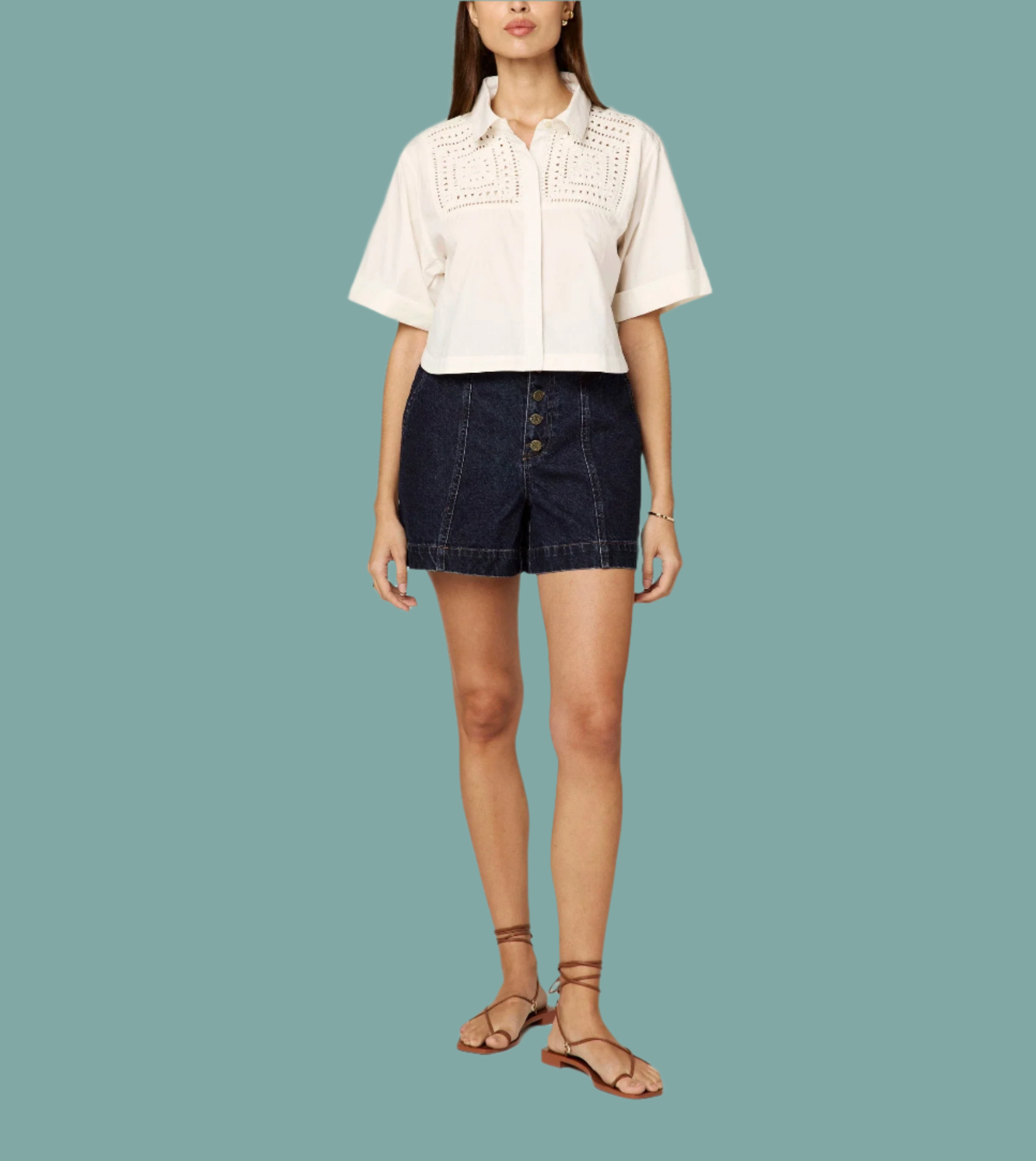 Ethically handmade in India from 100% organic cotton poplin, the Montana Blouse is a cropped, short-sleeve button-down top featuring a classic collar and intricate crochet detailing at the front yoke. Effortlessly lightweight with a relaxed fit, it's perfect for warm weather days. Pair with high-rise denim like the Archie Short to complete the look.