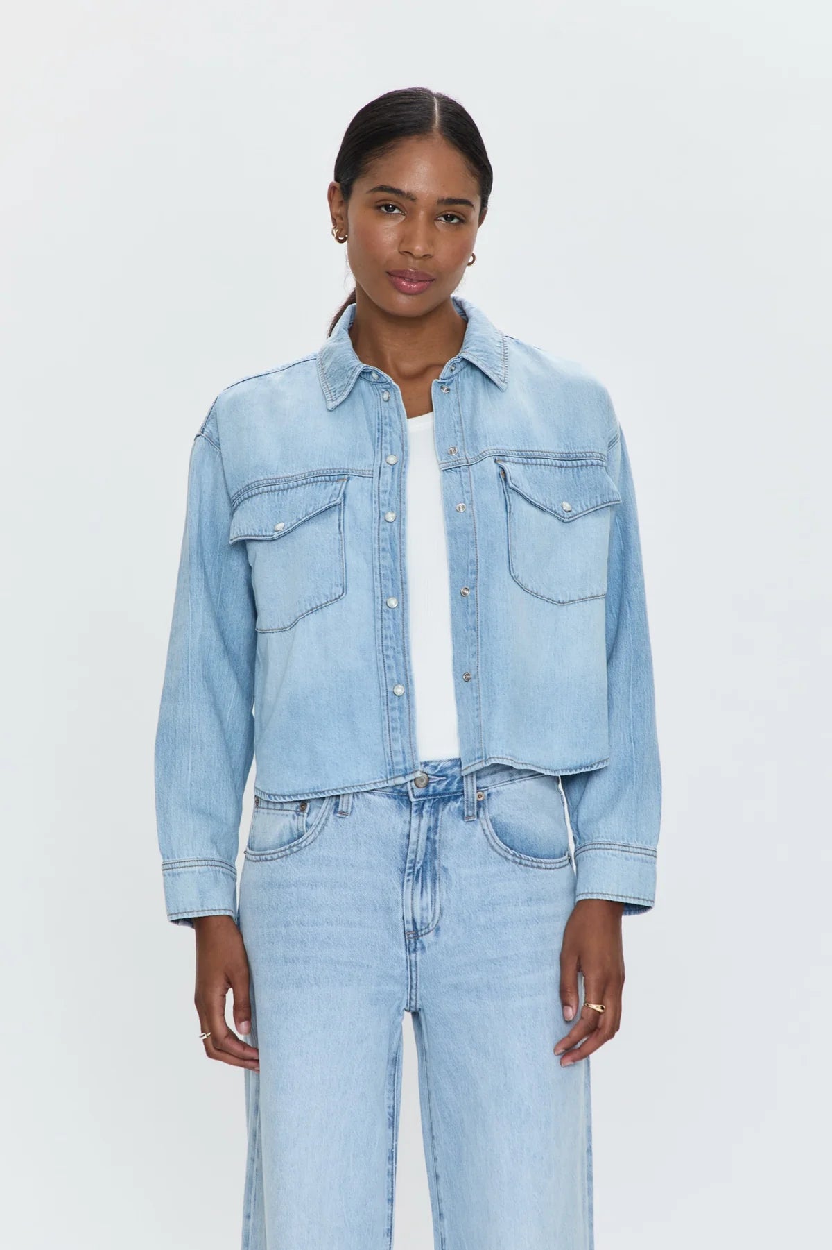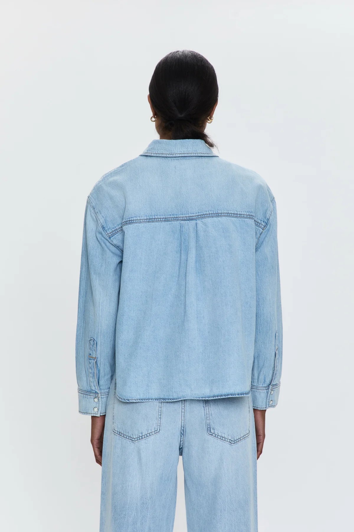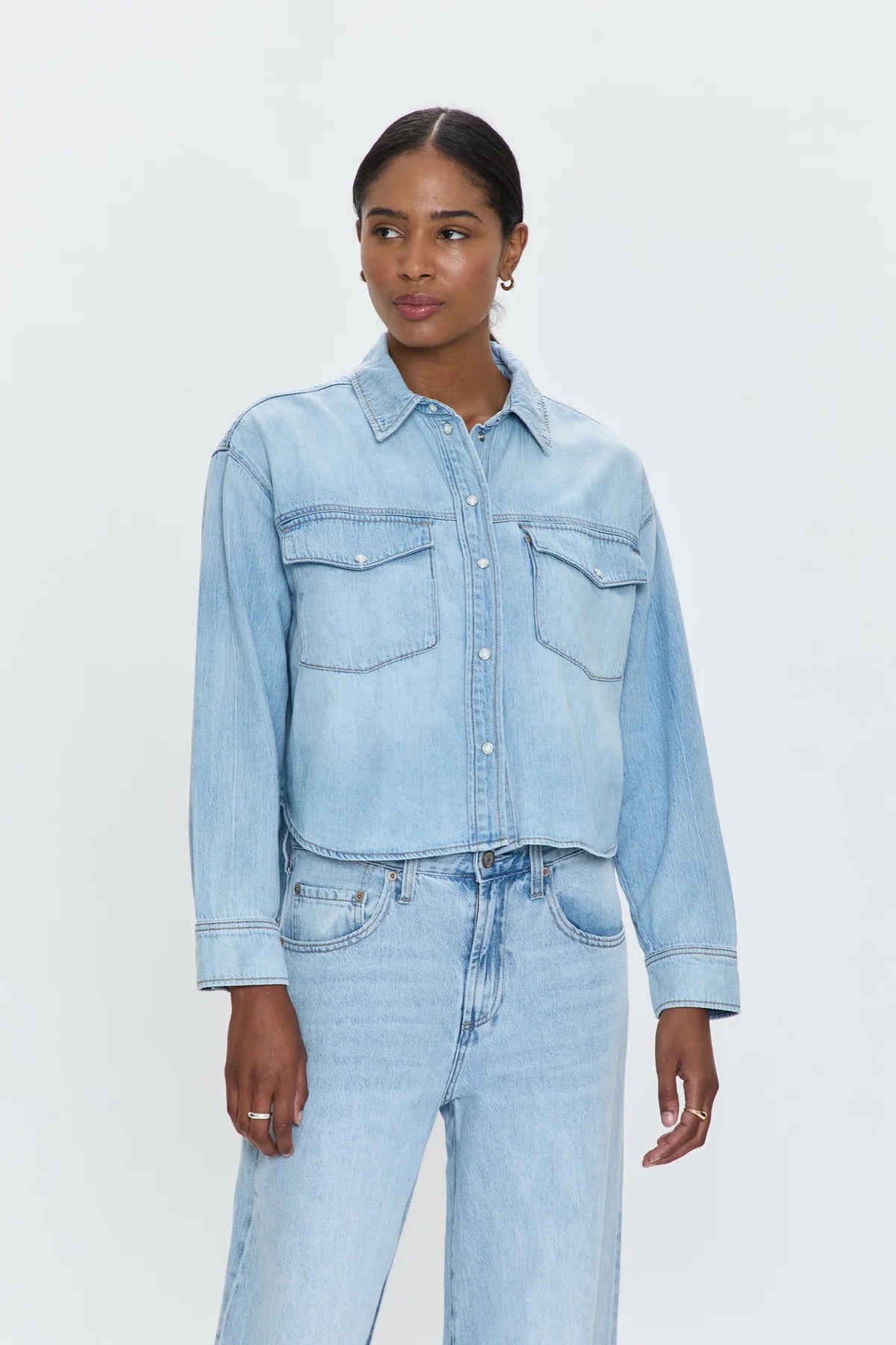 From work to weekend, the Sadie Long Sleeve Workwear Shirt is a versatile essential. This essential shirt features flattering front chest pockets and a just-right length that works perfectly tucked or untucked with your denim. The light wash makes it a natural match for all indigo shades.