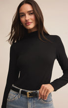 The Lira Second Skin Top offers a sleek, fitted silhouette that moves effortlessly with you. Crafted from a soft, stretchy baby rib blend, it features a cozy turtleneck and a heavy soft wash for extra comfort. Perfect for layering or pairing with your favorite denim, this versatile top is easy to care for with machine wash cold and tumble dry low.