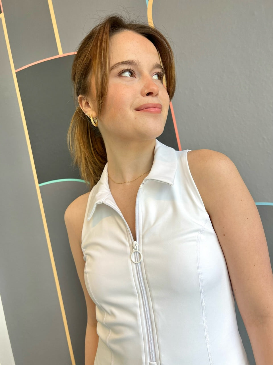 Effortlessly stylish and practical, the On The Move Active Dress is perfect for busy days. Moisture-wicking and 4-way stretch Pure Performance fabric offers comfort and convenience, while the half-zip design and collared neckline add a preppy touch. Stay comfortable and chic in this fitted, sleeveless mini dress.