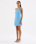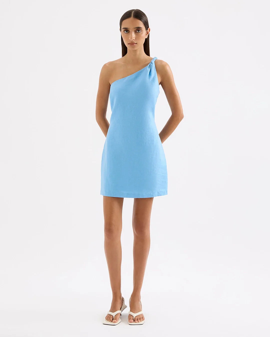 Meet your new warm-weather essential. The Avery Linen Mini Dress combines comfort and style with its 100% washed linen construction that feels soft against the skin. The one-shoulder silhouette showcases a distinctive twist detail on the thick strap, while a fitted waist flows into a gently flared A-line skirt. Smart design touches like gripper tape at the neckline and an invisible zipper keep everything secure and seamless. Fully lined for confidence, this dress delivers that perfect balance of laid-back and polished—ideal for everything from weekend brunches to evening gatherings.