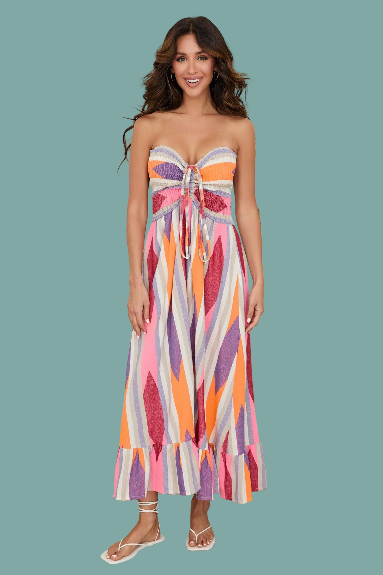 Embrace effortless style with this Aztec Bandeau Dress, featuring a sleek tube silhouette and eye-catching geometric print. The strapless bandeau design offers a modern, minimalist look perfect for warm-weather outings, beach days, or casual gatherings. Crafted for comfort and versatility, this dress pairs beautifully with sandals, sneakers, or strappy heels. A go-to piece that transitions seamlessly from day to night.