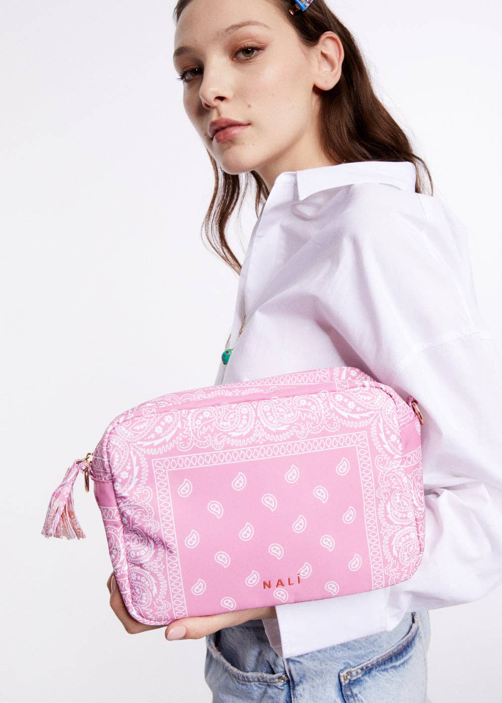 Carry all your essentials in style with our Bandana Borsello Bag. Made from comfortable, bandana-patterned nylon, this roomy pouch comes in two vibrant colors, perfect for summer. Ideal for vacationing or everyday use, measuring 18*26*12.5. Say bye to boring bags and hello to fashion-forward functionality!