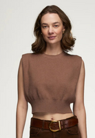 The Issa Top features a crew neck and sleeveless design with structured armholes for a comfortable, flattering fit. Accented with delicate pointelle trim, this casual piece combines softness and durability thanks to its blend of 5% angora, 17% polyester, 23% nylon, and 55% viscose. Perfect for everyday wear, it offers breathable comfort with a subtle textured detail.