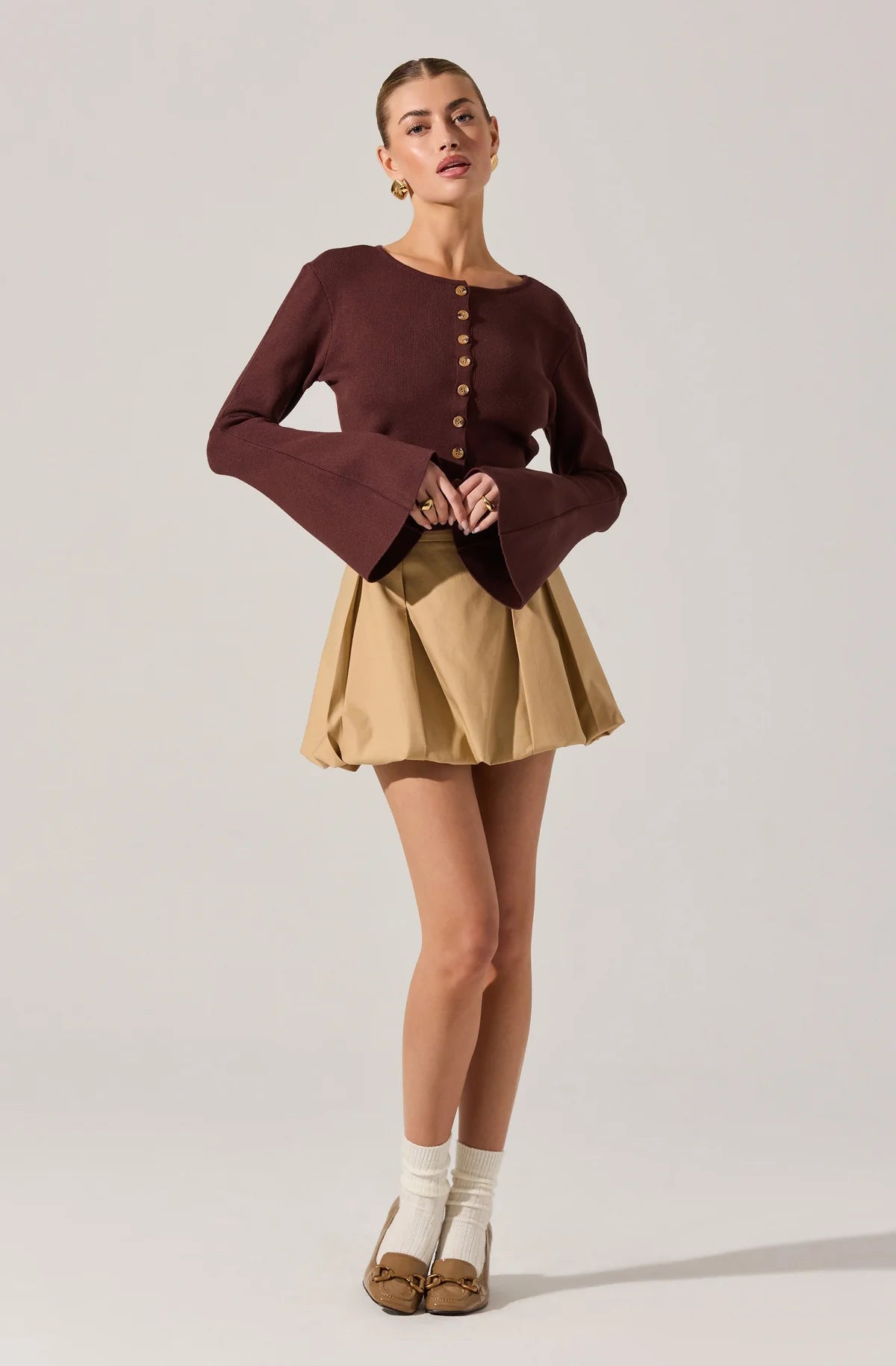 The Nylah Bell Sleeve Cardigan combines comfort and style with its slight cropped fit and trendy bell sleeves. Featuring a scoop neckline and button front closure, it’s easy to layer for work or casual outings. Made from a soft blend of 70% viscose and 30% polyester, it offers lightweight warmth while maintaining a polished look. Dry clean only to keep it looking fresh and ready for all-day wear.