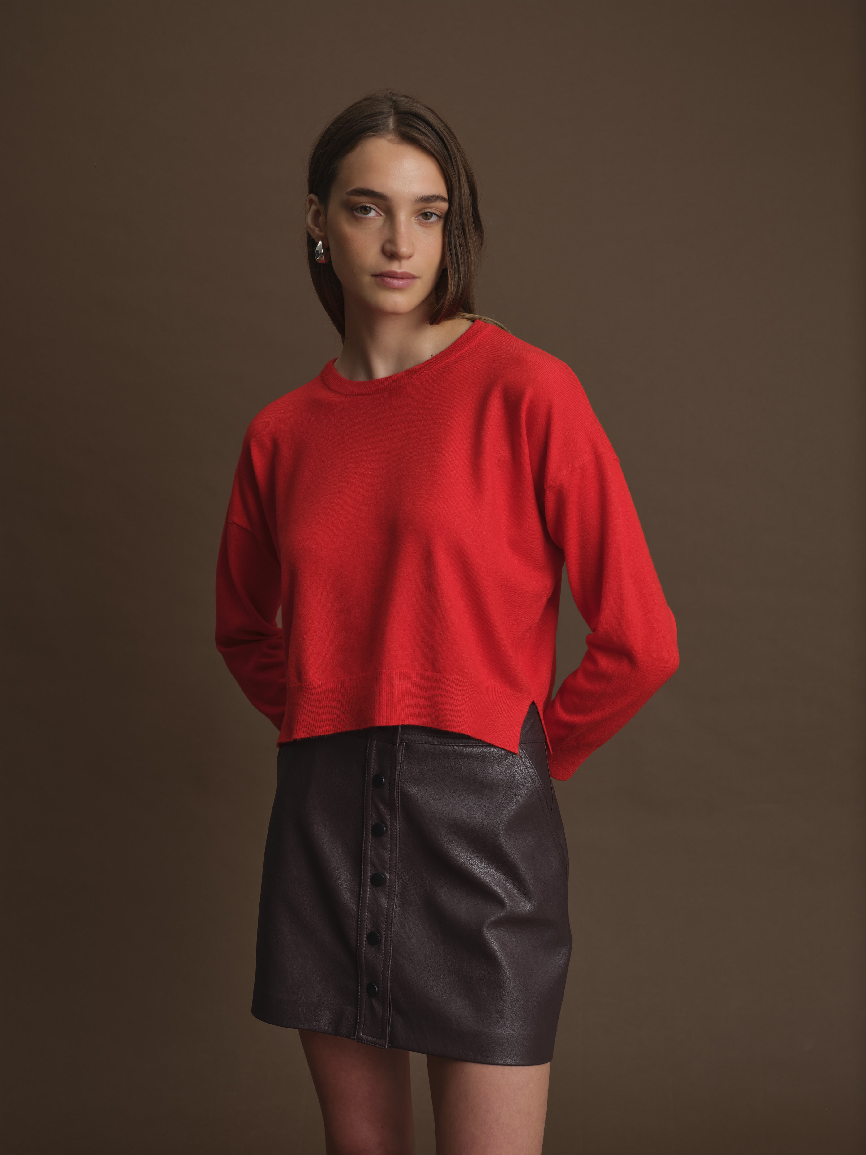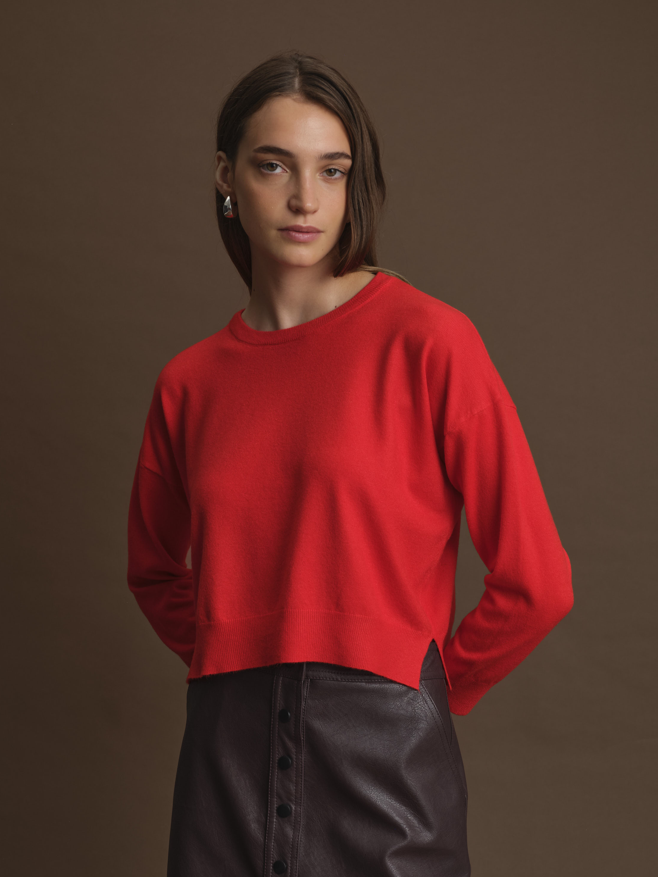 The Polly Sweater brings a playful twist to classic style with its slight balloon sleeves and flattering cropped fit. Featuring side slits for added movement, this cozy sweater is perfect for layering or wearing on its own. Available in vibrant green and red, it’s a fun way to brighten up your wardrobe while staying comfortably chic.