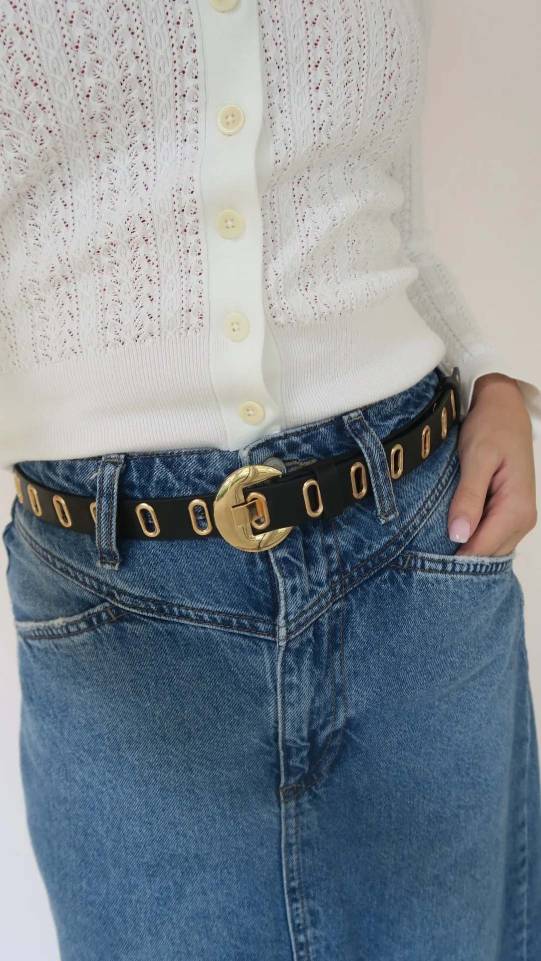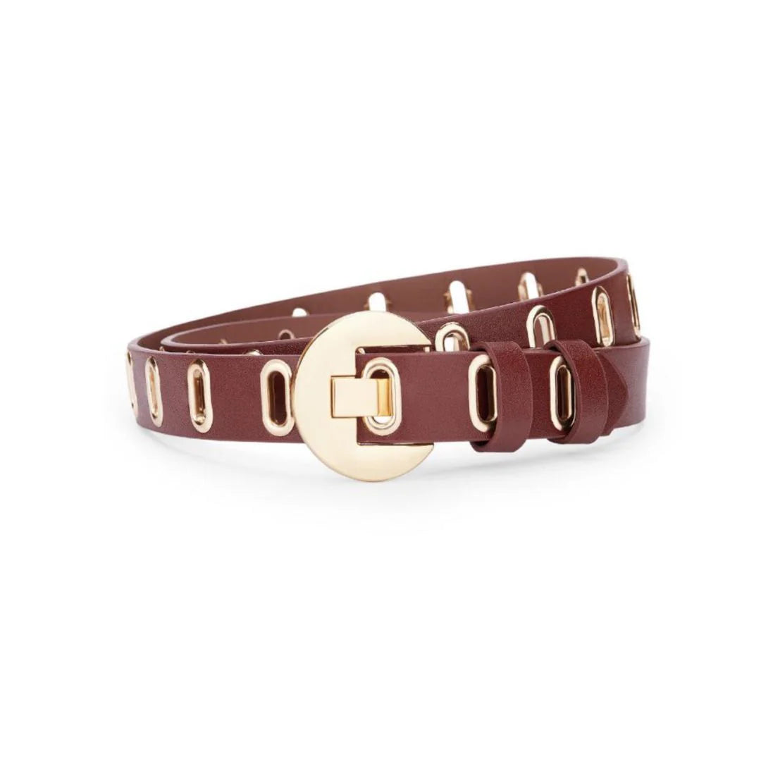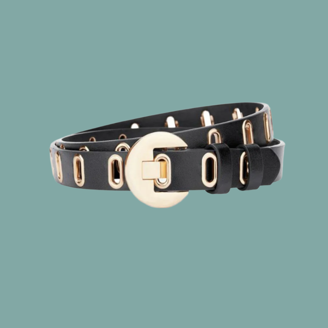 Made from cruelty-free vegan leather, this belt is not only stylish, but also environmentally conscious. The gold plated brass buckle and grommets add a touch of glamour to any outfit. With a length of 42.25" and a width of 1", it's fully adjustable for the perfect fit. Get ready to slay in style!
