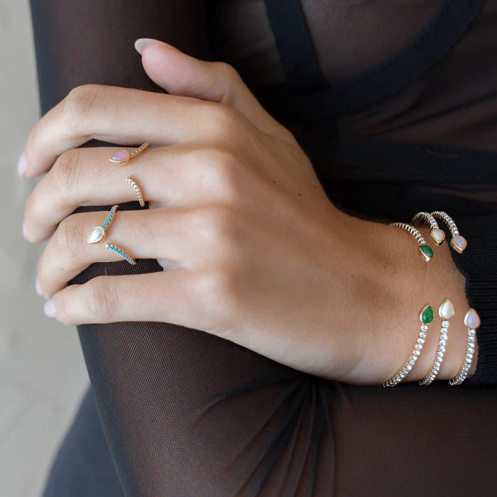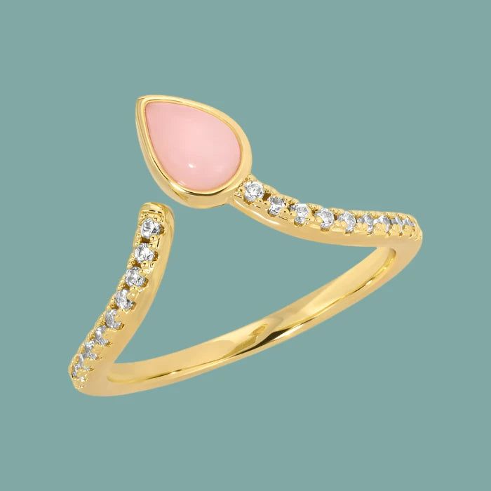 This stunning dainty ring is the perfect piece to stand alone for that fashionably classy look, or a layering piece that brings in an elegant taste and a pop of color with the genuine pink shell stone. Stacked with our Camille's, Calista's, Cora's, or even some of your own items, the Shay takes your next look towards a cute chic style.