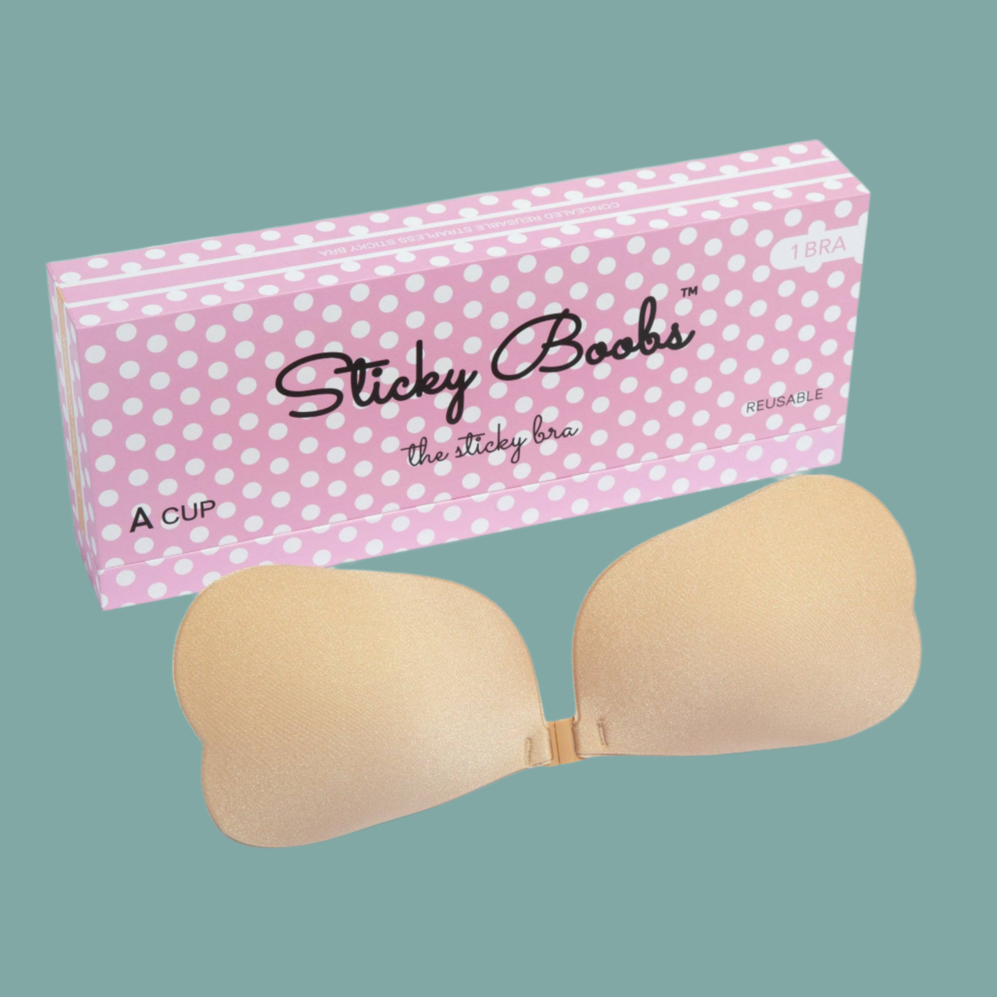 Rock any outfit with confidence with The Sticky Bra from Sticky Boobs! Made with gentle medical-grade adhesive, it keeps your girls lifted and in place all day while giving them a natural push. With multiple cup sizes and the ability to reuse it up to 40 times, this bra is perfect for any neckline or dress.