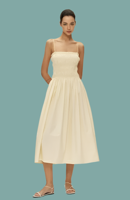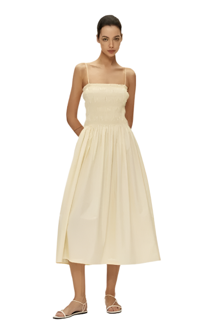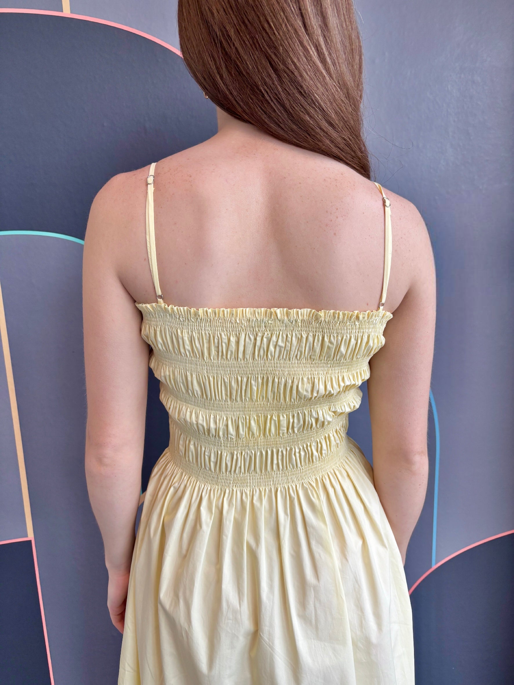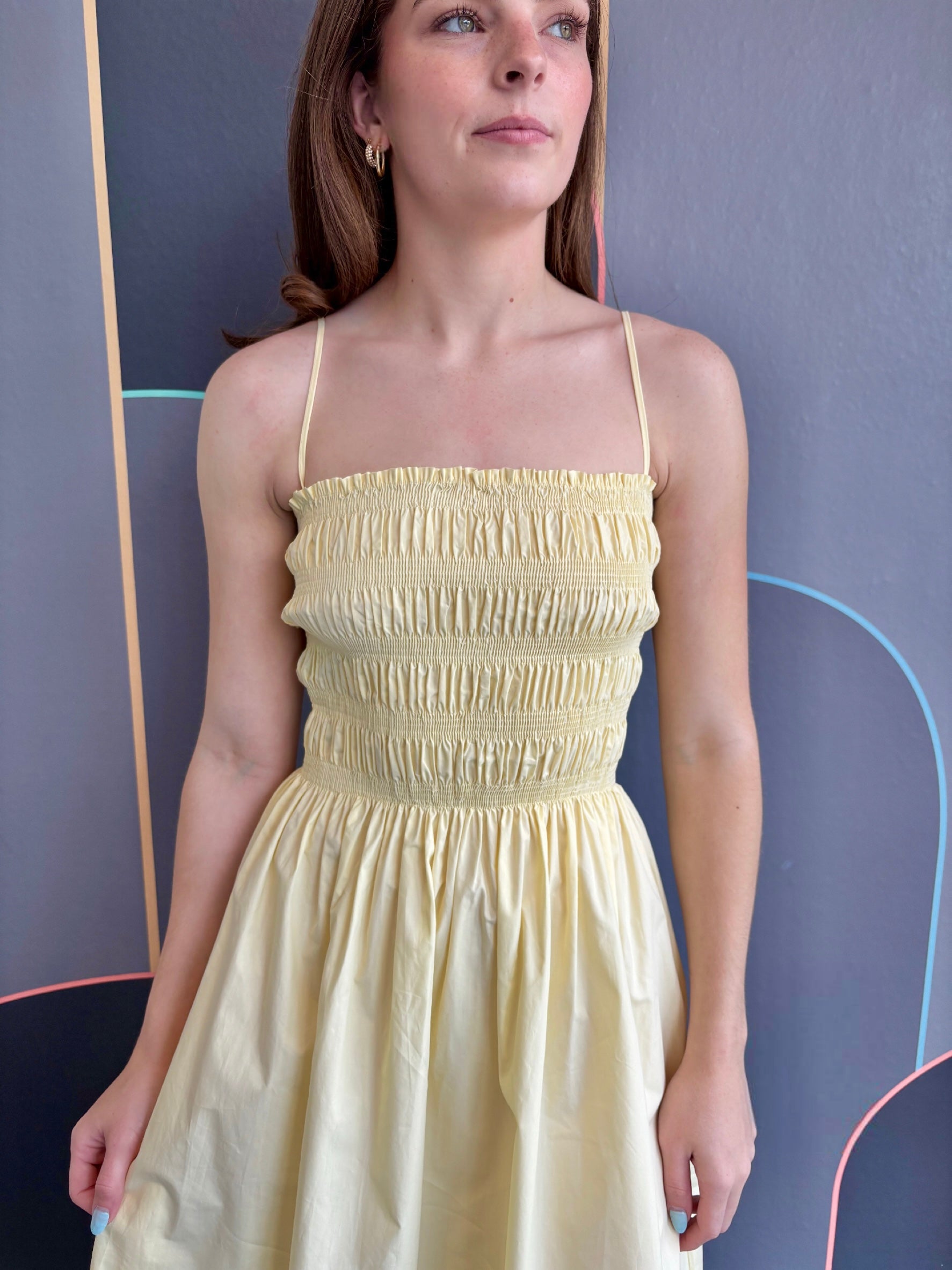 The Vivian Smocked Dress is the perfect blend of style and comfort! This adjustable spaghetti strap sundress features a beautiful butter yellow color and a smocked design for the perfect fit. Ideal for any summertime occasion, this dress will have you looking and feeling effortlessly chic.